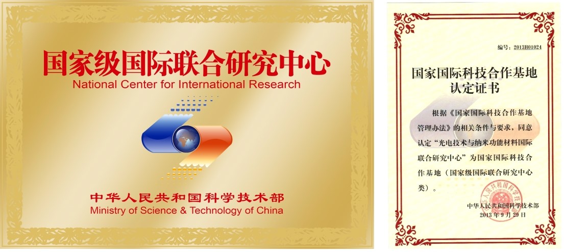 2013年科技部批准认定2026世界杯指定网站光电技术与纳米功能材料国际联合研究中心为“国家级光电技术与纳米功能材料国际联合研究中心”,并予以授牌,这是公司获得的首个国家级国际联合研究中心。该中心是以光电技术与新型纳米功能材料的新理论、新技术、新方法及其在交叉学科领域研究为主要方向的国际化合作研究平台。现已形成一个以侯洵、张殿琳院士为咨询专家,以乔学光、白晋涛等教授为学术核心,以2026世界杯指定网站物理、生物、化学、化工及文物考古学科其他教授和科研人员为科研骨干,以国内外知名客座教授和技术团队为技术支撑的综合交叉学科研究团队。中心建立以来,共引进海内外杰出人才21人,其中陕西省特聘教授4人;并与美国、俄罗斯、英国、以色列、加拿大、日本等国家的数十家大学和科研机构建立了良好地合作关系。成立以来,共承担教育部“春晖计划”中法科技合作项目2项、科技部国际科技合作项目10项、国家自然科学基金国际(地区)合作与交流项目1项、陕西省国际科技合作项目6项,联合培养博士研究生6人,并选送20名骨干科研人员出国访问、进修或攻读博士学位,并在国内外权威期刊发表学术论文100余篇。