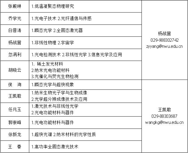 合作导师:侯洵、乔学光、白晋涛、王凯歌、任兆玉、郭崇峰、徐新龙、王春、忽满利、胡晓云
