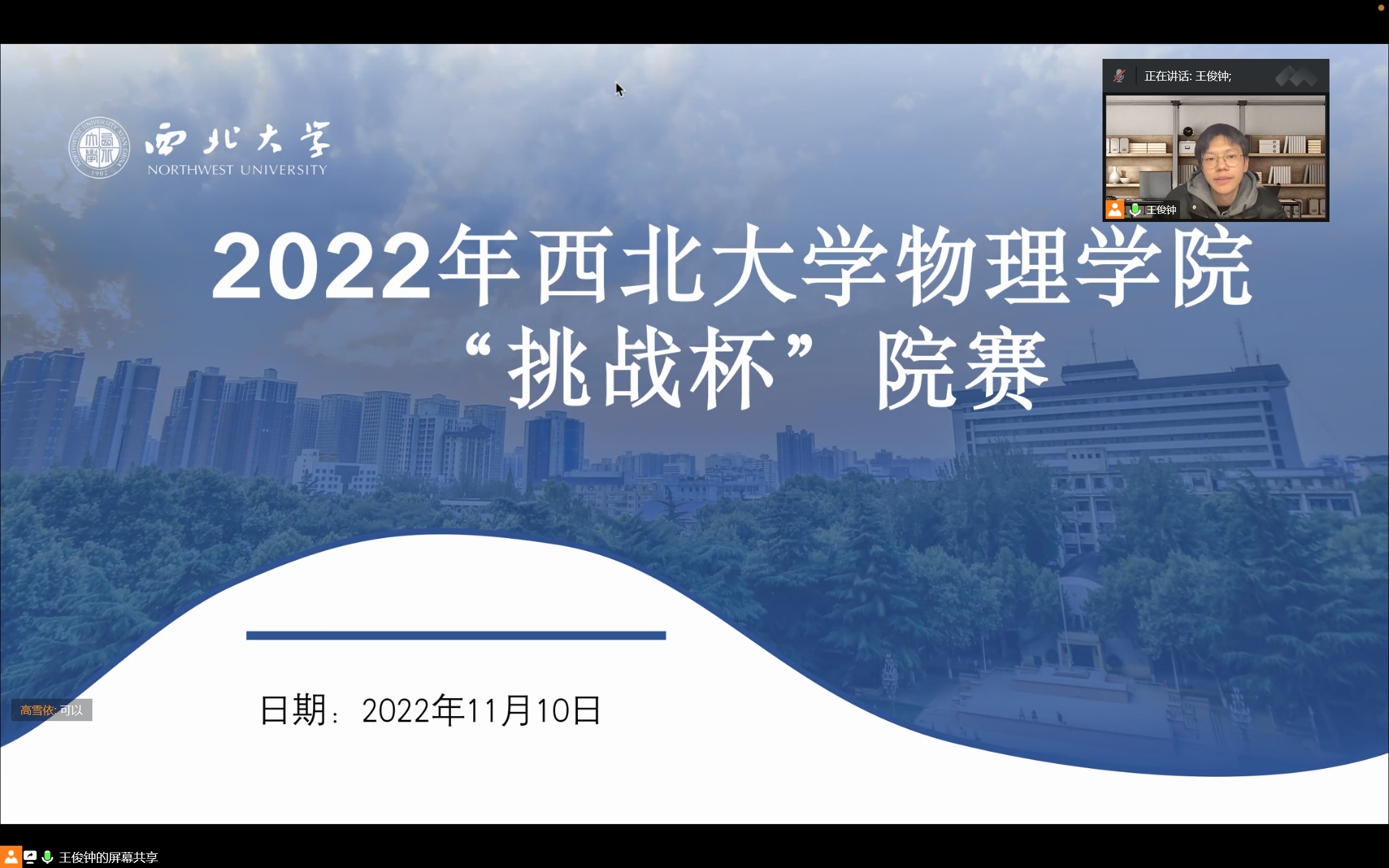 为深入学习贯彻党的二十大精神,加强员工创新创业教育,培育员工创新精神、提升创新能力,进一步激励物理学子敢于创新、勇于拼搏,同时为“挑战杯”等校级及以上各类学术科技创新创业竞赛做好作品的遴选和培育工作,11月10日晚,公司进行了第十一届“挑战杯”院系初赛答辩。根据疫情防控的要求,本次答辩评审会采取线上方式进行。答辩评审会由专业教师和专职团干部组成。