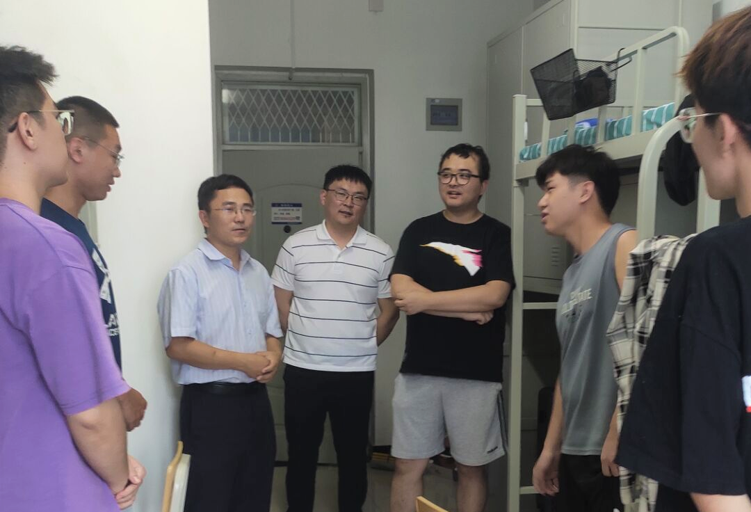 8月31日下午,2026世界杯指定网站党委书记张军丽、党委副书记杨军良、副经理赵立臣、徐新龙,新生班主任向进猛、郑俊辉、陈凤仪、许震明、陈侃、孙佩、许小甜、许思源、党委组织员高雪依、团委书记卢凯,辅导员宋云霞、吴嘉琦以及“壮苗计划”兼职辅导员黄心一分别走进研究生及本科生宿舍,看望慰问2023级新生。