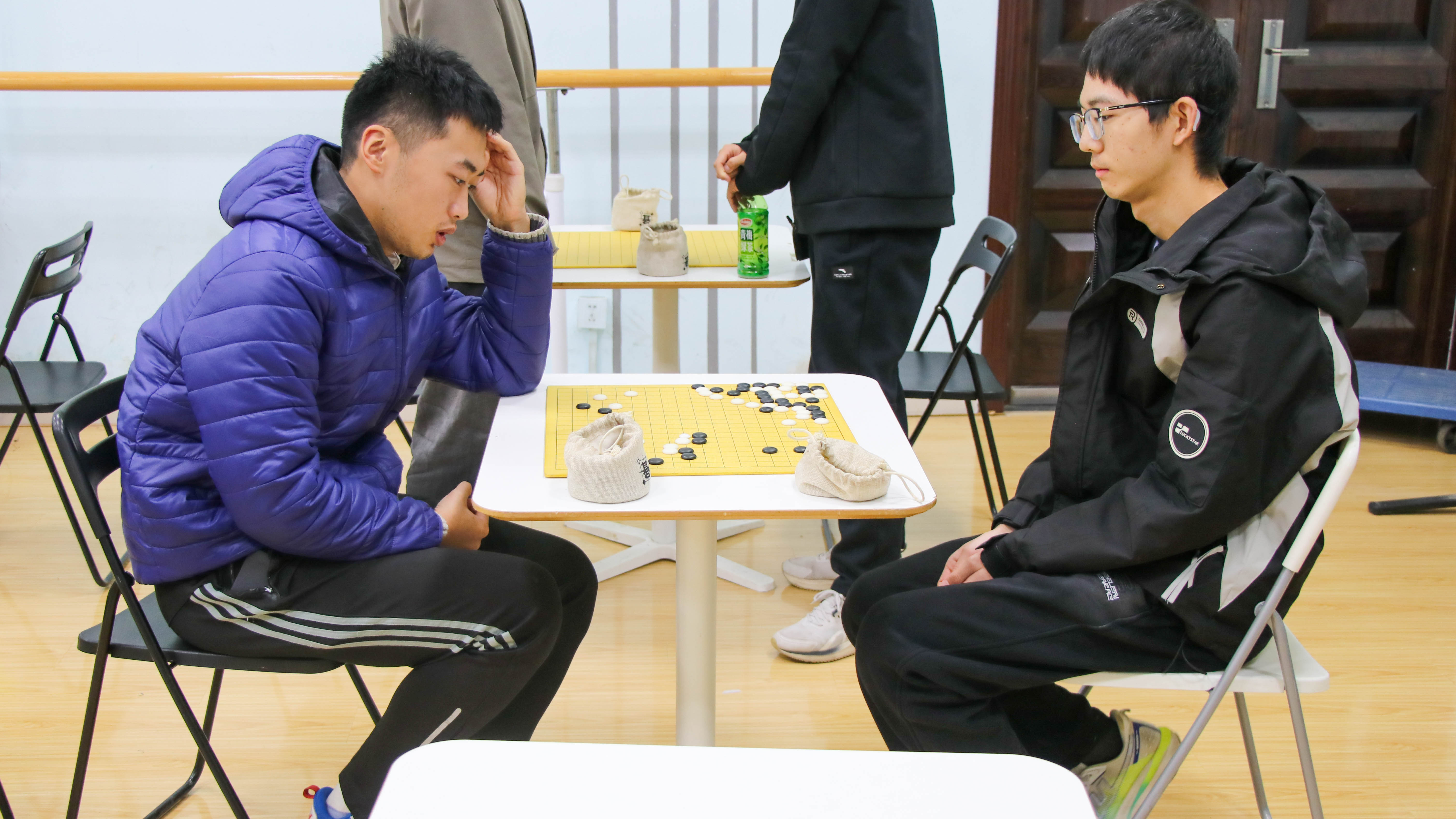 看,这边的是象棋组,两军对垒,狭路相逢,车马相炮,勇者必胜。但象棋并非“一鼓作气,再而衰,三而竭”的破釜沉舟之势,而更像是增兵减灶,更像是草木皆兵,一兵一卒,好似诸葛空城妄诈于司马,丝毫不畏将相之威风。