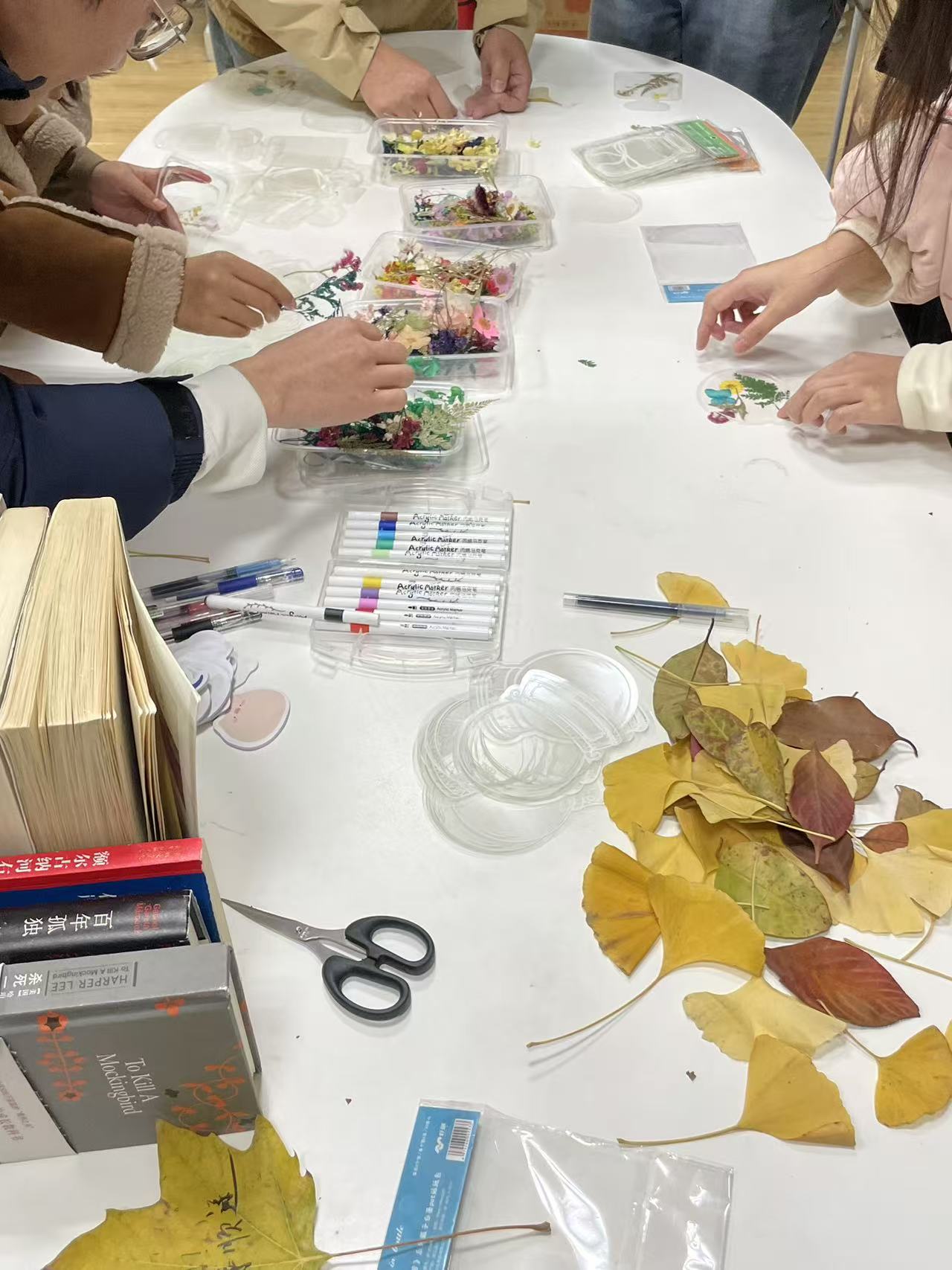 自由创作阶段,现场提供了木质书签、各类干花及专业画具等丰富材料,工作人员全程指导,并设有“灵感加油站”供同学们参考。现场气氛轻松融洽,同学们在手工制作中交流想法、结识新友,不仅锻炼了动手能力,也在繁忙学业之余体验到“慢下来”的放松与愉悦。“平时泡在实验室和公式里,很少有机会静下心做手工,这次把秋天藏进书签里,感觉特别治愈”拿着自己做的书签去图书馆,连看书都更有动力了”……现场反馈真挚而温暖,展现出理性学科中绽放的美学之花。