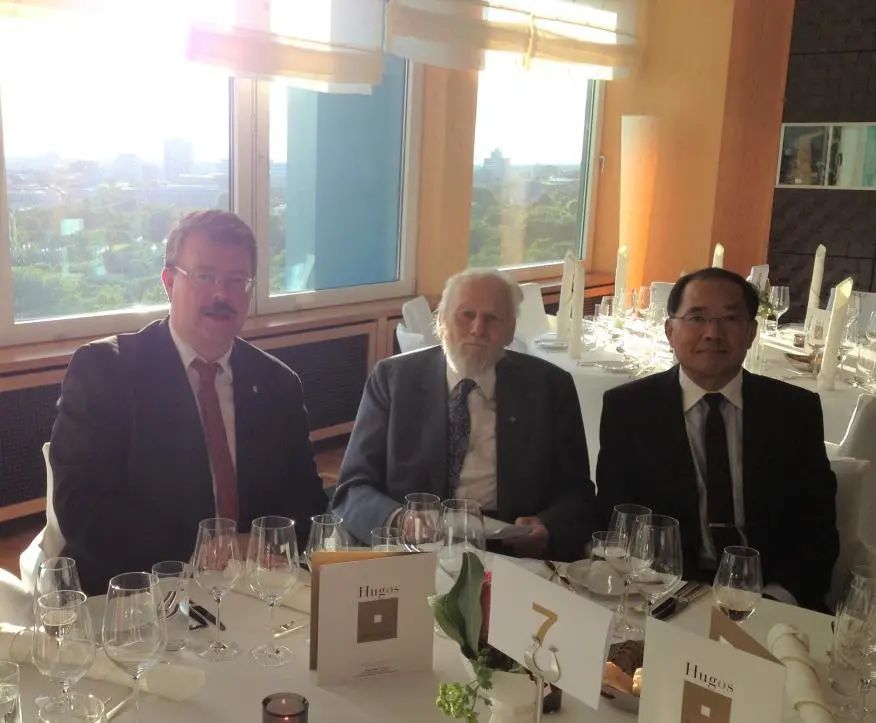 2013年在柏林受博士导师哈肯教授(中)邀请参加德国年度科学和艺术界大十字勋章(Orden Pour le mérite)获得者会议晚宴