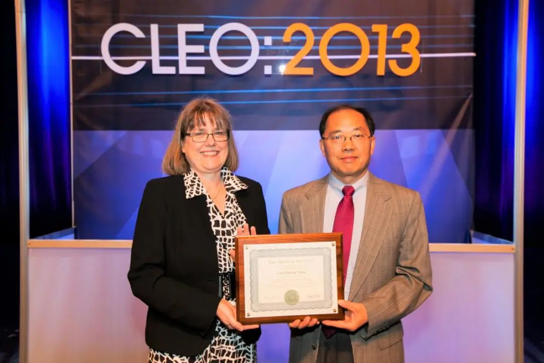 2013年在CLEO会议上,时任OSA主席、诺奖获得者Donna Strickland颁发OSA fellow牌匾