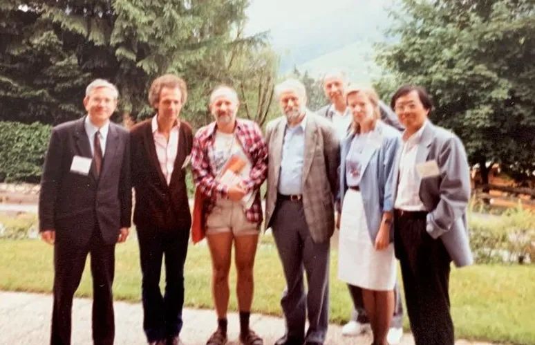 奥地利奥尔匹斯山开会时与一批著名光科学家合照(从左至右:Boris Zeldovich,Robert G. Harrison, Michael Berry, Hermann Haken, Y. I. Khanin, Olga Kocharovskaya,宁存政)