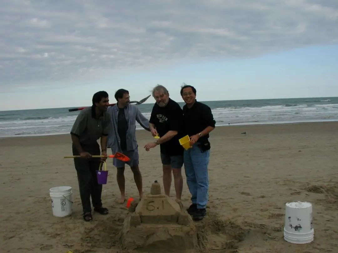 2003年在美墨边境海边参加“晶格常数为6.1埃的半导体国际会议”上,获得“沙雕”第一名时与小组成员合照