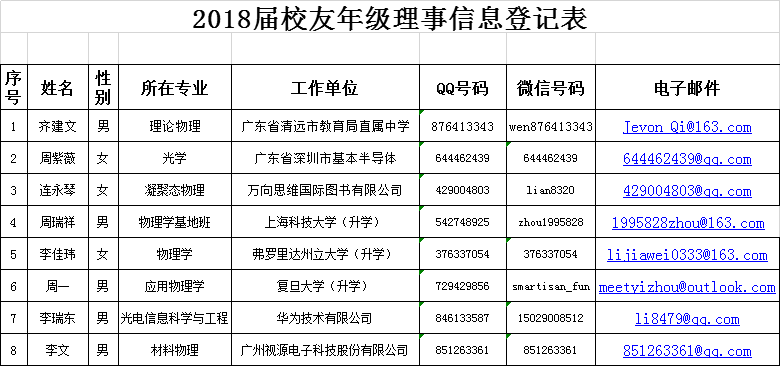 2018届员工理事名单
