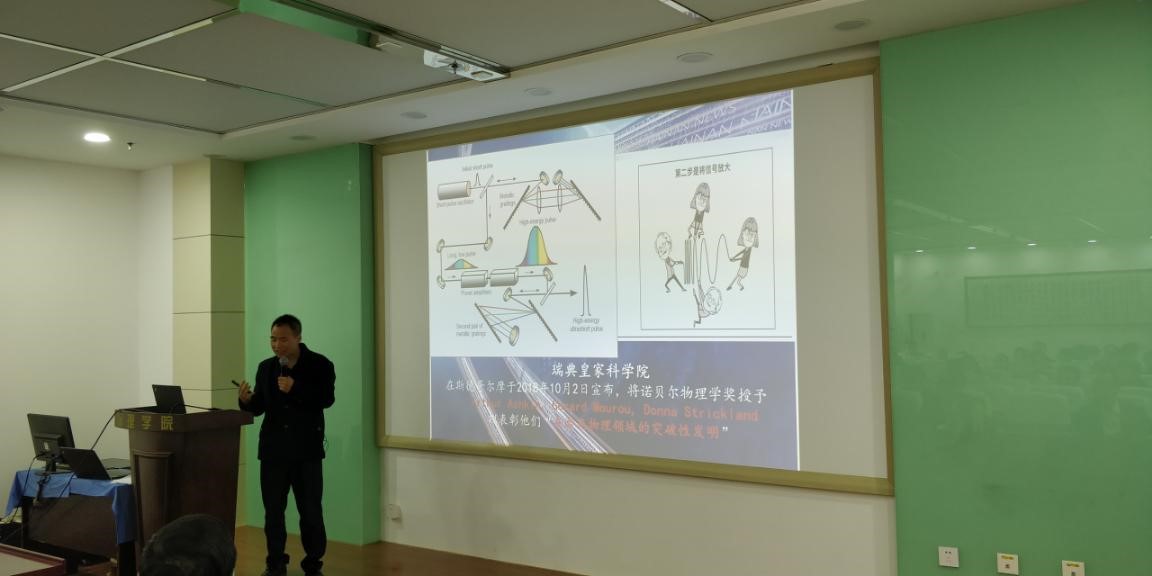 刘雪明教授首先介绍了光纤激光技术的应用,介绍了光纤激光器的极窄线宽、极快脉冲、极强功率等优势。严格论证了超快激光产生的动力学过程——DFT技术。紧接着报道了孤子分子产生的动力学过程,引入了孤子分子及其相互作用理论,将DFT技术应用于孤子分子内部动力学过程的研究。同时,楼教授还展示了从双孤子拓展到多孤子产生的呼吸特征。最后指出该类模型的物理应用需要进一步深入探究。