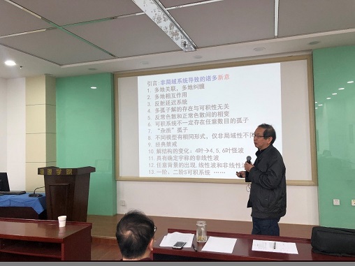 楼森岳教授首先介绍了非局域可积物理模型的前沿研究进展,引入pt对称、多地物理以及量子力学中的禁戒等物理概念。严格论证了这类可积模型具有真实的物理意义。紧接着报道了这类模型存在一类新颖的孤子禁戒,并强调这种现象是非局域模型所特有的。同时,楼教授还展示了该模型下孤子的弹性碰撞和怪波的结构相变等诸多特性。最后指出该类模型的物理应用需要进一步深入探究。