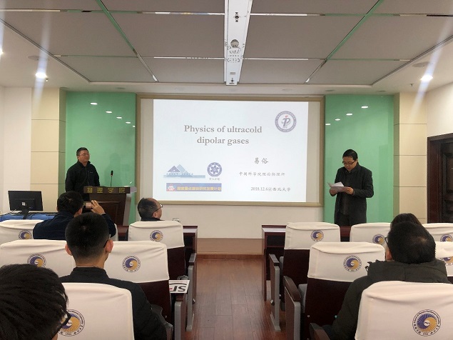 报告中,易俗研究员首先回顾了超冷原子气体的研究历史和重要的实验研究进展,详细介绍了超冷原子偶极玻色气体和偶极费米气体的一些独特性质以及Spinor凝聚体、光腔中的自旋轨道耦合凝聚体等方面的研究成果,最后展望了超冷分子方面的研究。