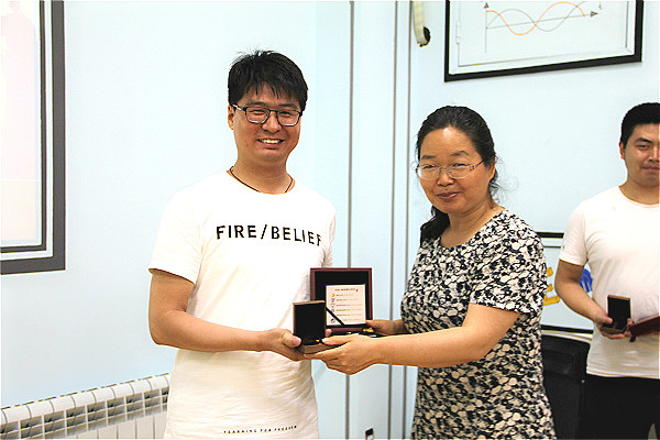 杨文力经理向毕业生代表赠送毕业纪念品