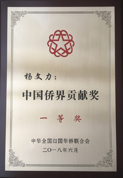 公司杨文力教授荣获 “中国侨界贡献奖”一等奖