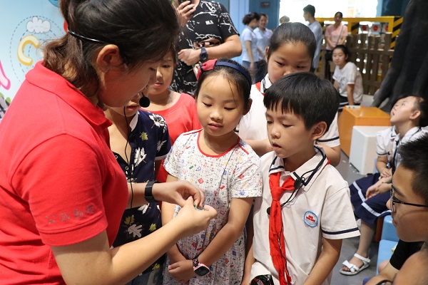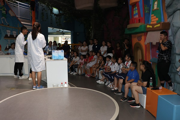 25日,在延安科技馆,队员们分组进行讲解。展板讲解和有奖问答相互配合,用精彩的讲解和精美的纪念品吸引了一大批观众,一整天的活动结束后,众多精美纪念品也全部发放完毕。趣味物理实验组队员和公司化学与材料公司实践队队员互相配合,分别从物理和化学两个方面向小朋友们科普科学小常识,精彩有趣的物理小实验和神奇炫目的化学小实验,引导孩子们思考和探究科学世界。话剧组同学们的两场话剧表演向科技馆的众多游客宣传了侯伯宇先生的先进事迹。