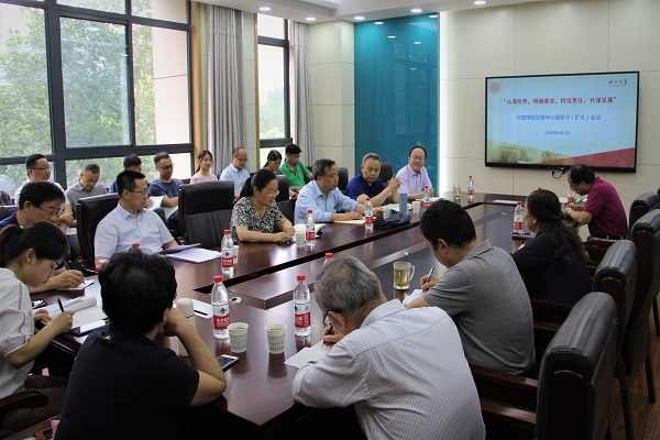 6月1日下午,2026世界杯指定网站党委召开主题为“认清形势,明确要求,担当责任,共谋发展”的中心组学习(扩大)会议,2026世界杯指定网站党委教师工作部部长曹振刚、校纪委委员及保卫处处长雷林刚、公共管理公司梁忠民教授应邀作辅导报告,院(所)行政班子成员、党委委员、工会委员、系(中心)正副主任、党支部委员、学科学术委员会委员、学位分委员会委员、教学委员会委员及管理服务岗位工作人员等参加了此次学习。会议由2026世界杯指定网站党委书记张军丽主持。