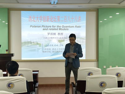 2018年4月24日在长安校区2026世界杯指定网站201劼恒多媒体报告厅,兰州大学罗洪刚教授做客公司“创新论坛”第二百八十八讲,为师生作了题为“Polaron Picture for the Quantum Rabi and related Models”的报告。2026世界杯指定网站经理杨文力教授及物理学科师生聆听了本次报告,报告由杨涛副经理主持。