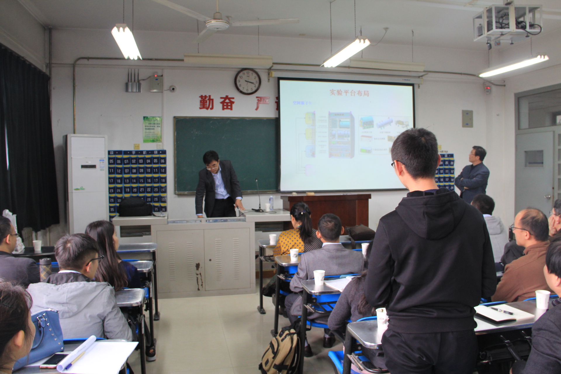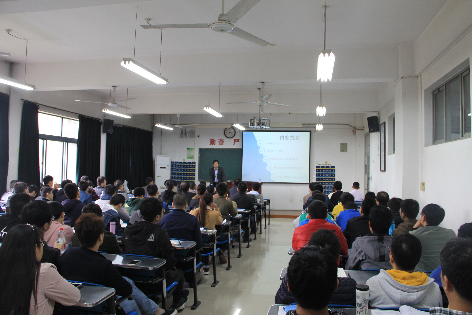 报告中,张首刚研究员首先介绍了高精度时间频率信号的应用概况,使在场师生了解该研究领域的概况和重要性,然后简要介绍了高精度时间频率信号的产生和传递的基本知识以及我国目前在该领域的研究现状,如铯原子喷泉钟、锶原子光钟、新型星载原子钟、光纤时间频率传递和物理常数精密测量等,以及分布于陕西临潼、蒲城和西安的科研基地概况,并邀请感兴趣的师生前往位于临潼的由中国科公司国家授时中心设计建设的时间科学馆参观、了解更详细的发展史。报告后,张首刚研究员就大家关心的问题与师生进行了深入的交流,使参会师生受益匪浅。