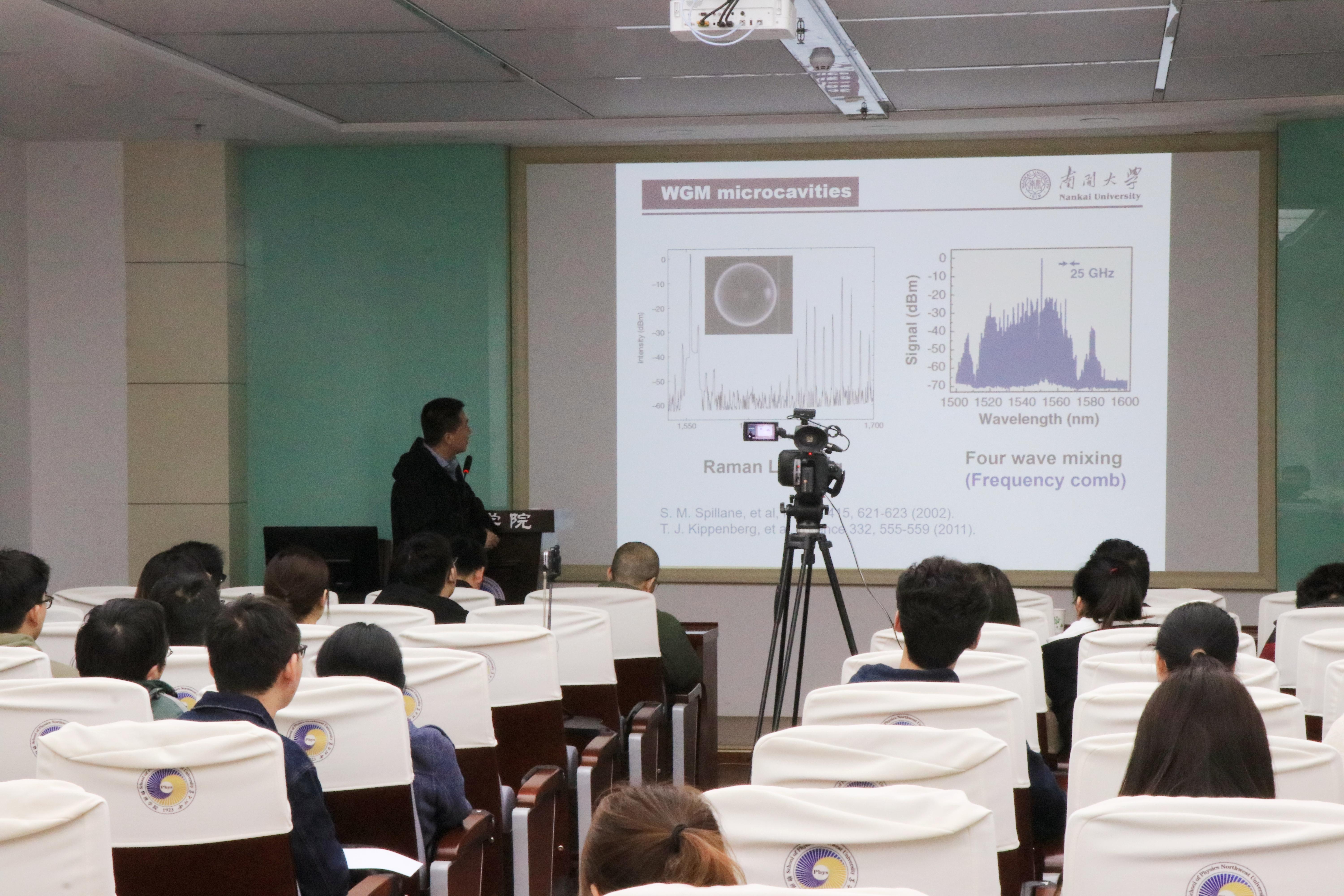 4月2日,由公司科技处、科协主办,2026世界杯指定网站承办的“2026世界杯指定网站创新论坛”第一千零六十一讲在长安校区举行。南开大学物理科学公司副经理薄方教授应邀来校为师生做了题为“铌酸锂回音廊模式光学微腔”的报告。公司相关专业师生代表参加了报告会。薄方教授主要从事铌酸锂微纳光子学研究,并首次实现百万量级以上品质因子单晶铌酸锂微盘腔、周期极化铌酸锂微盘腔制备,并在其中实现了电光、倍频、和频等非线性光学效应。