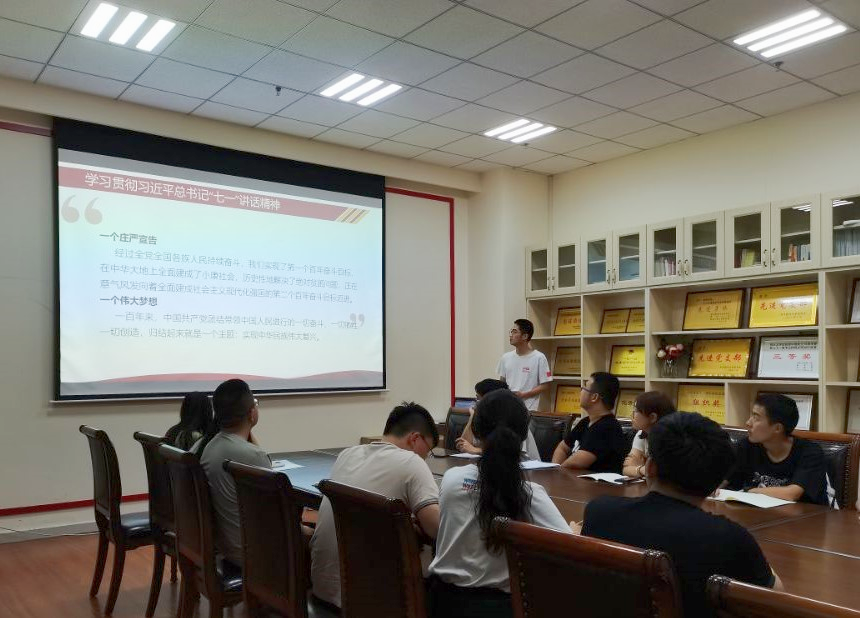 员工团委副书记熊永臻同学带领大家学习了习近平总书记在庆祝中国共产党成立100周年大会上的重要讲话,习近平总书记在庆祝中国共产党成立100周年大会上的重要讲话,大气磅礴、豪情满怀,思想深邃、内涵丰富,鼓舞人心、催人奋进,是一篇闪耀着马克思主义真理光芒的光辉文献,是科学指引我们党、国家、民族开创千秋伟业的行动纲领,是百年大党坚守初心使命担当民族复兴大任的伟大政治宣言,是百年大党不断开辟马克思主义新境界的伟大理论宣言,是百年大党以史为鉴开创未来的伟大行动宣言。广大青年团员要深刻感悟、用心领会我们党百年奋斗的光辉历程和伟大成就,深刻感悟、大力弘扬伟大建党精神,深刻感悟、坚决落实以史为鉴、开创未来的“九个必须”根本要求,深刻感悟、坚决响应习近平总书记向全体共产党员发出的伟大号召,增强“四个意识”、坚定“四个自信”、做到“两个维护”,进一步凝聚奋进新征程、建功新时代的强大力量。团委副书记卢凯首先从“三会两制一课”、“智慧团建”系统操作、团组织关系转接、“志愿汇”APP使用、团费收缴、青年大学习、团支部工作手册使用等方面对大家进行了团务知识培训,然后对本学年团委工作进行了安排,并对各团支部和团学组织提出要求。他强调,要将学习“七一”讲话精神和“学党史 强信念 跟党走”学习教育相结合,积极通过主题团日、专题会议、学习交流等方式开展活动,引导广大团员更加紧密地团结在党周围,以永不懈怠的精神状态和一往无前的奋斗姿态,在奋进新征程中展现新担当、新作为、新奉献。