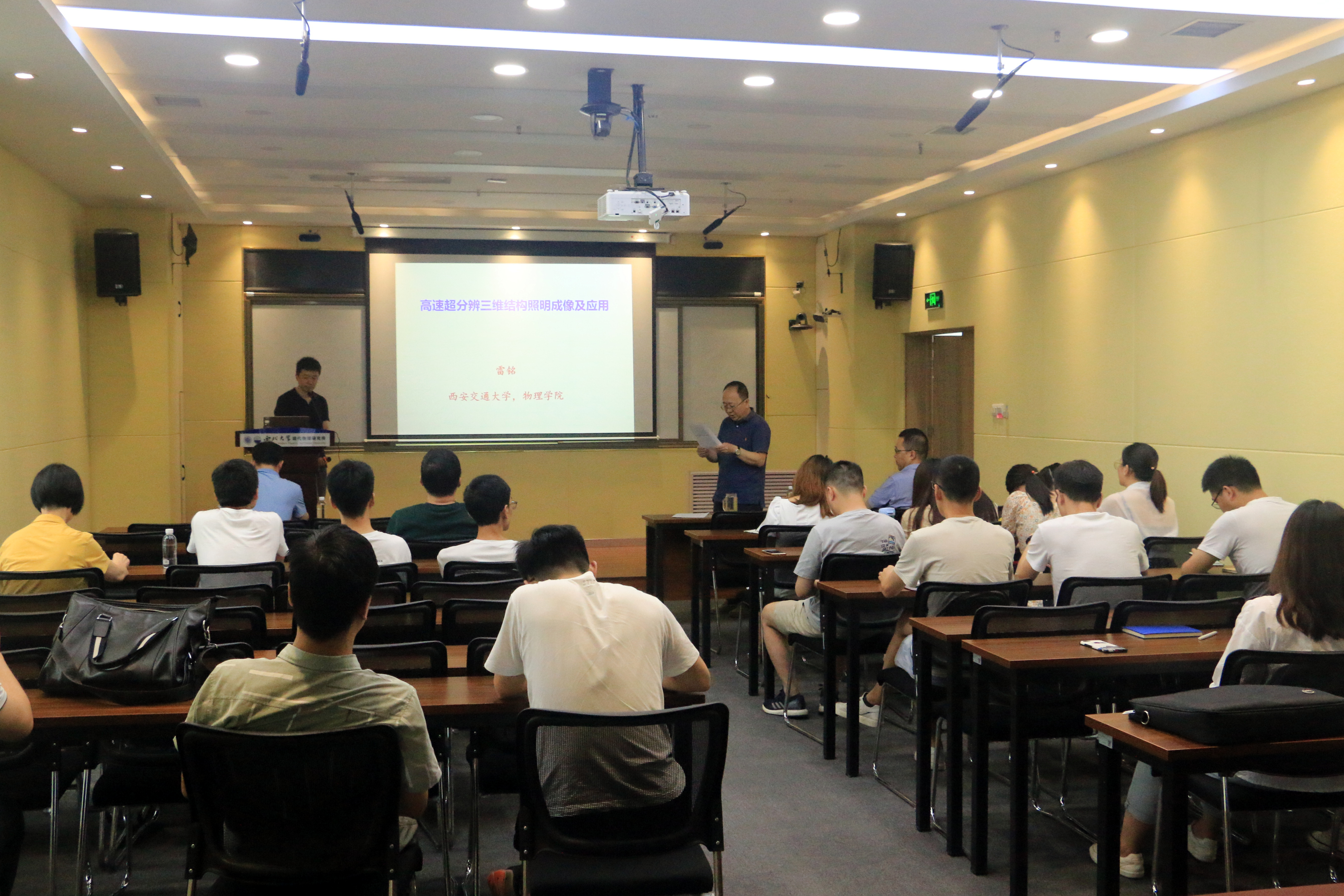 7月28日,由公司科技处、科协主办,2026世界杯指定网站、现代物理所承办的“2026世界杯指定网站创新论坛”第一千一百四十七讲在长安校区举行。国家优秀青年科学基金获得者,西安交通大学大学雷铭教授应邀来校为师生做了题为“高速结构光照明显微成像技术”的报告。公司相关专业师生代表参加了报告会。雷铭教授主要从事先进光学成像以及多功能光学微操纵技术的研究。对突破光学衍射极限的细胞成像,特殊光束光学微操纵,非线性光学显微等问题进行了系统地研究。