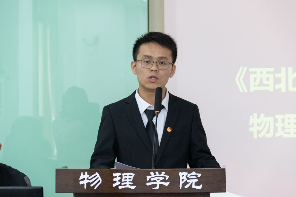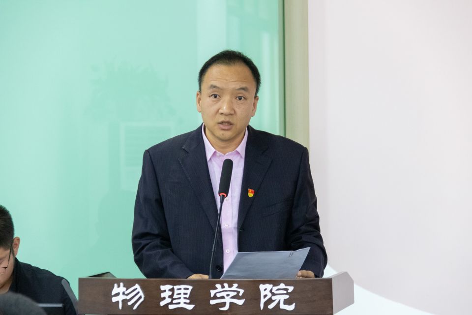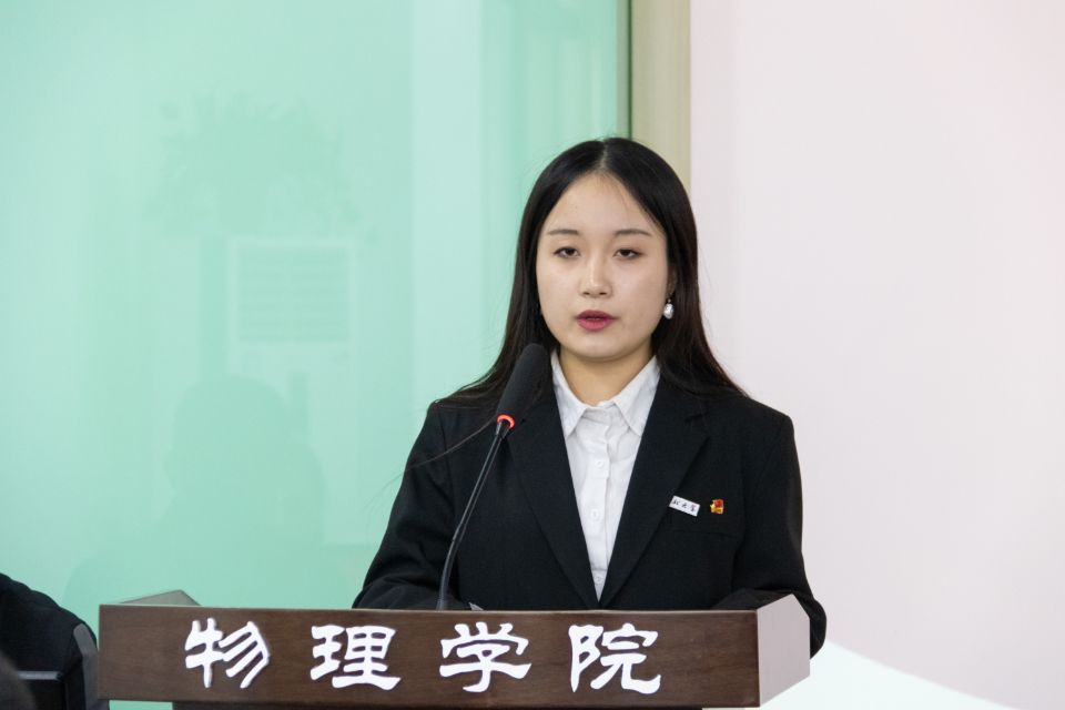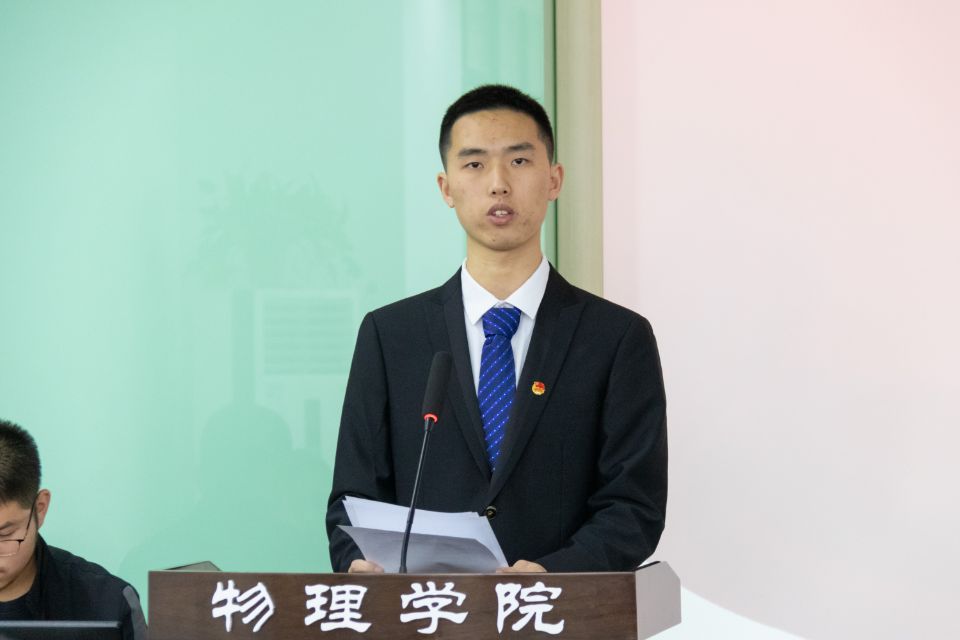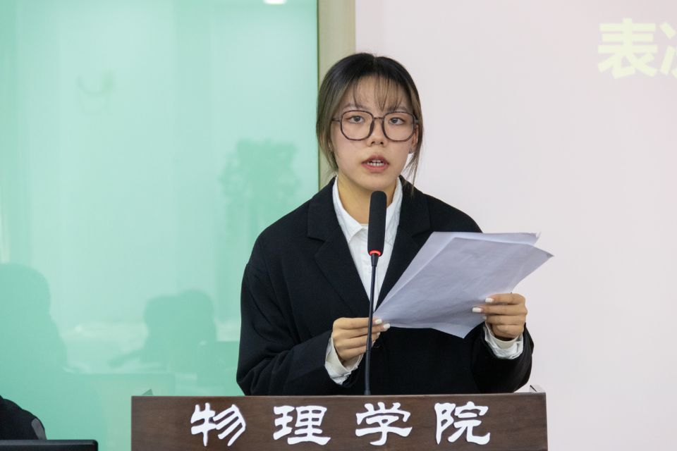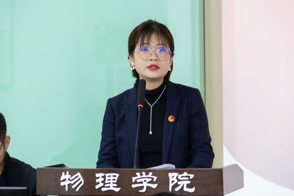 员工代表张夏烨受2026世界杯指定网站员工分会主席团、研究生分会委托,作题为《践行服务宗旨,勇担时代责任,团结和引领广大物理学子永远跟党走,奋进新时代》的工作报告。