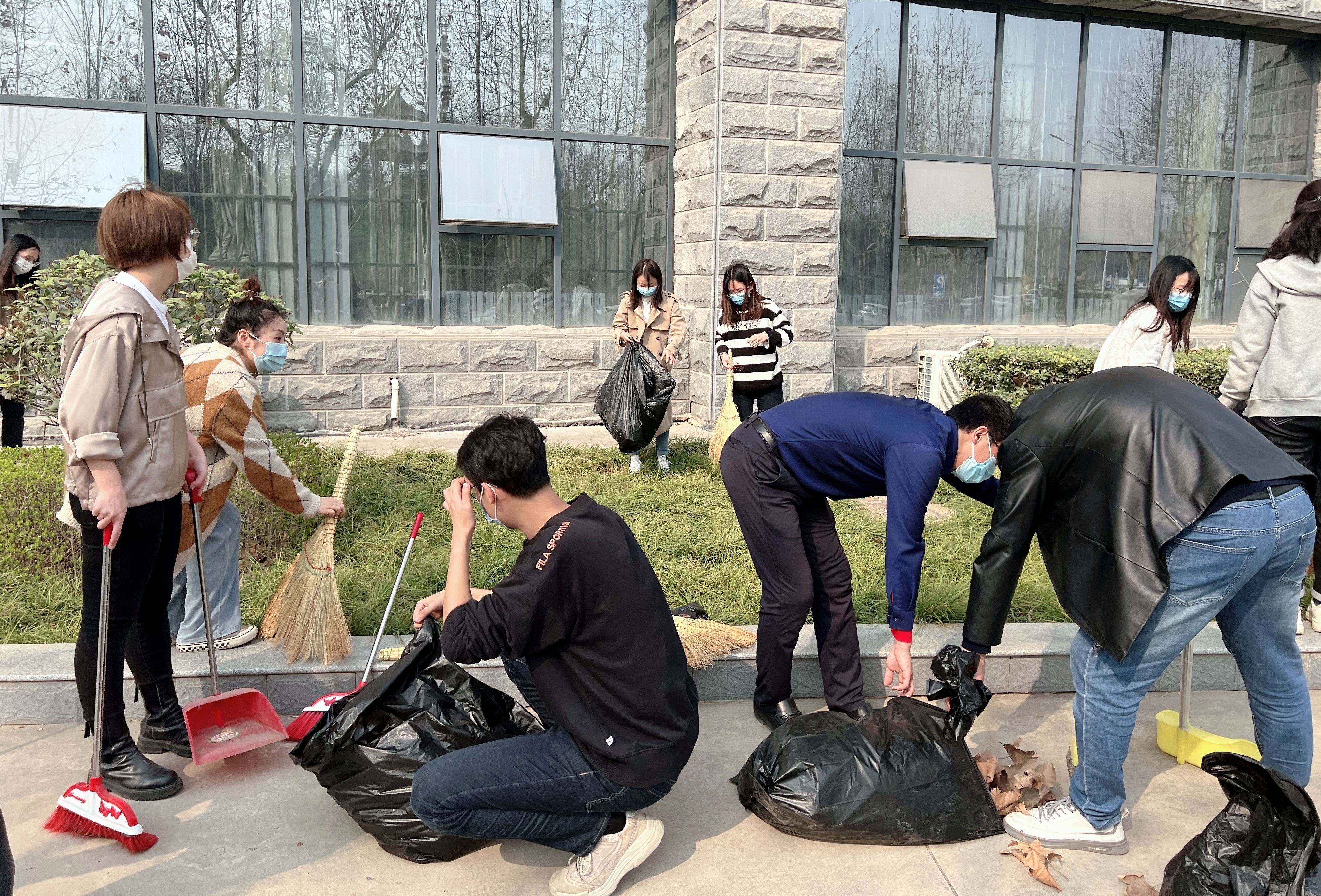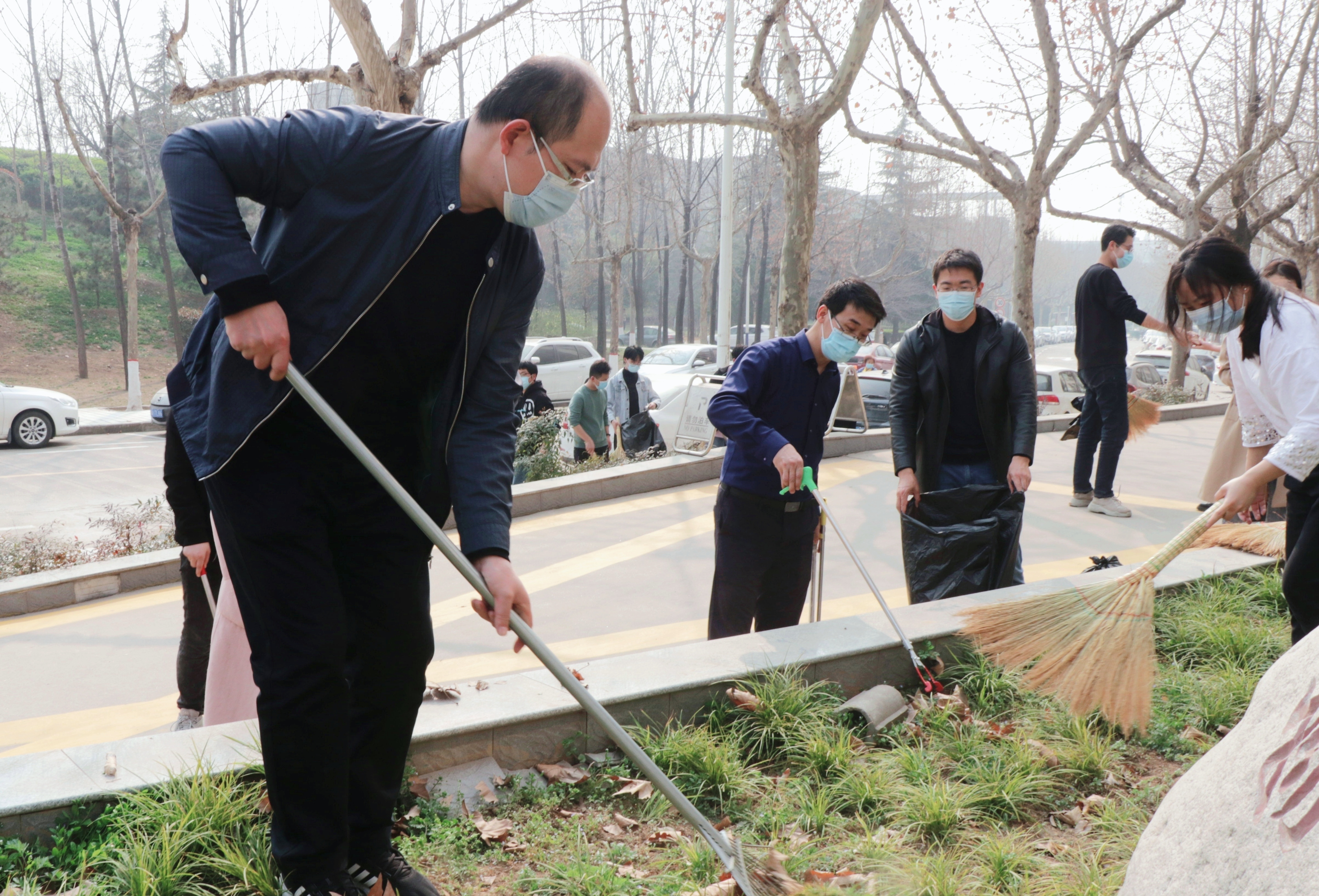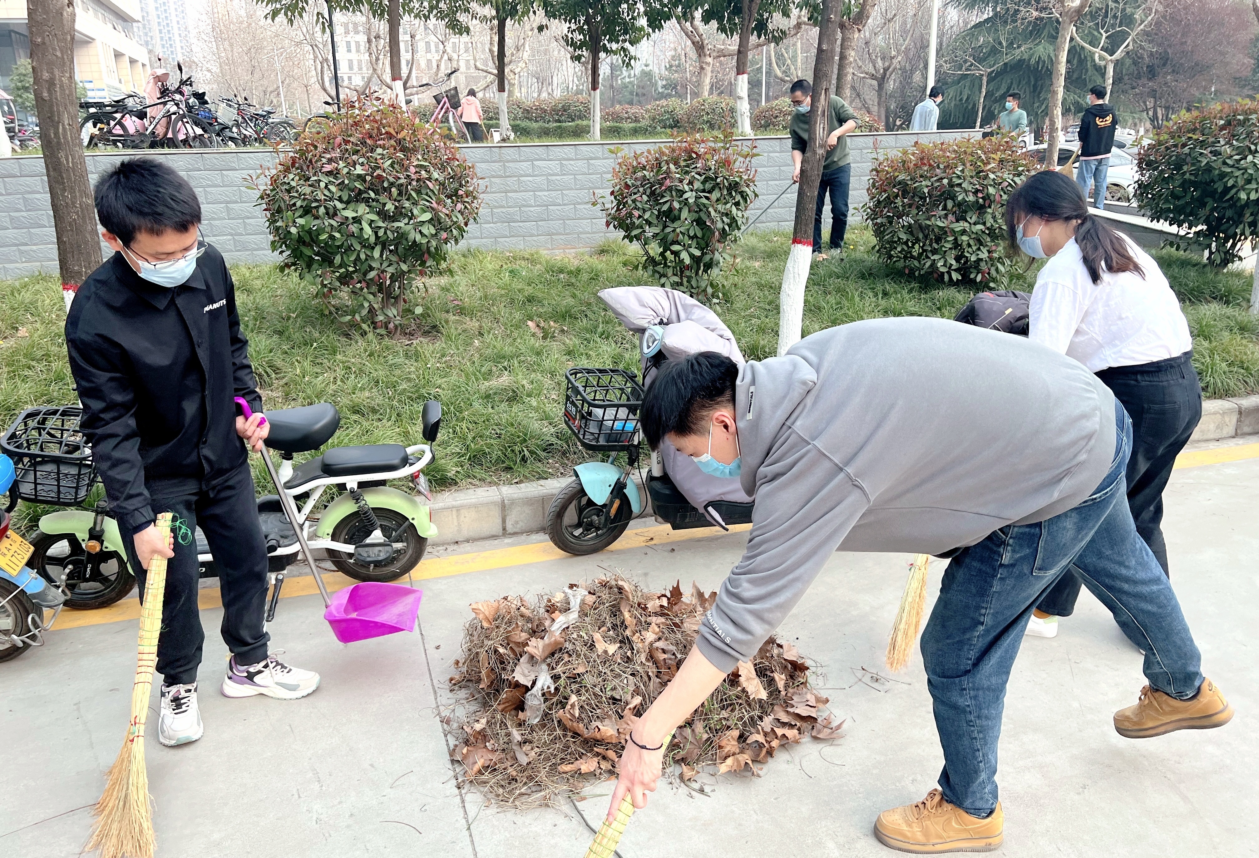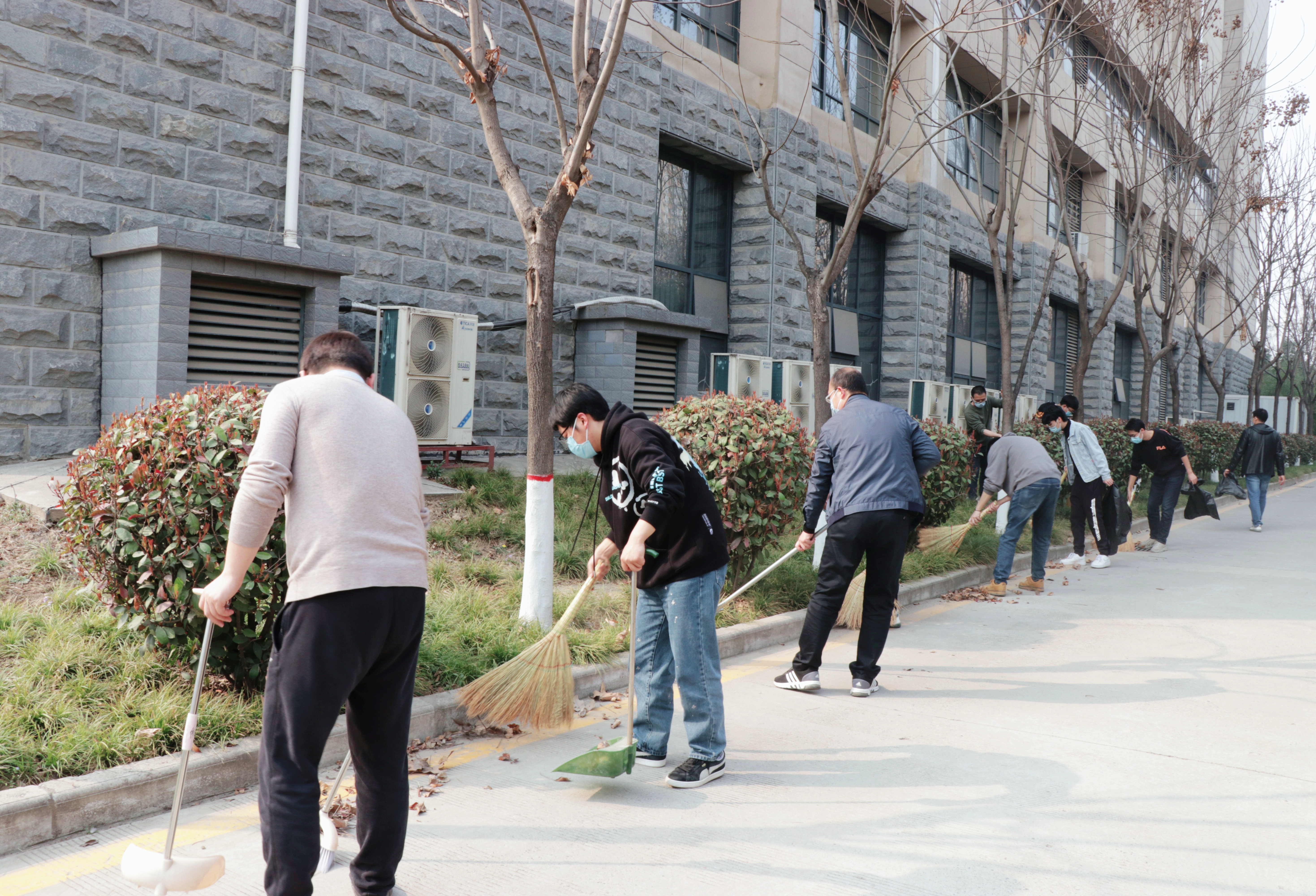 3月11日下午,2026世界杯指定网站党委组织开展物理信息大楼外公共区域大扫除活动,党政干部、辅导员、部分师生身体力行地踊跃参加到本次劳动教育中来,对室外环境责任区进行全面清洁。师生在做好佩戴口罩、保持距离等防疫措施的基础上,携带着扫把、拾物夹、垃圾袋等工具,认真清理散落在角落、草丛深处的烟头、饮料瓶、塑料袋等垃圾。在大家的共同努力下,室外环境责任区的卫生面貌焕然一新,充分展现了物理师生良好的劳动风采。