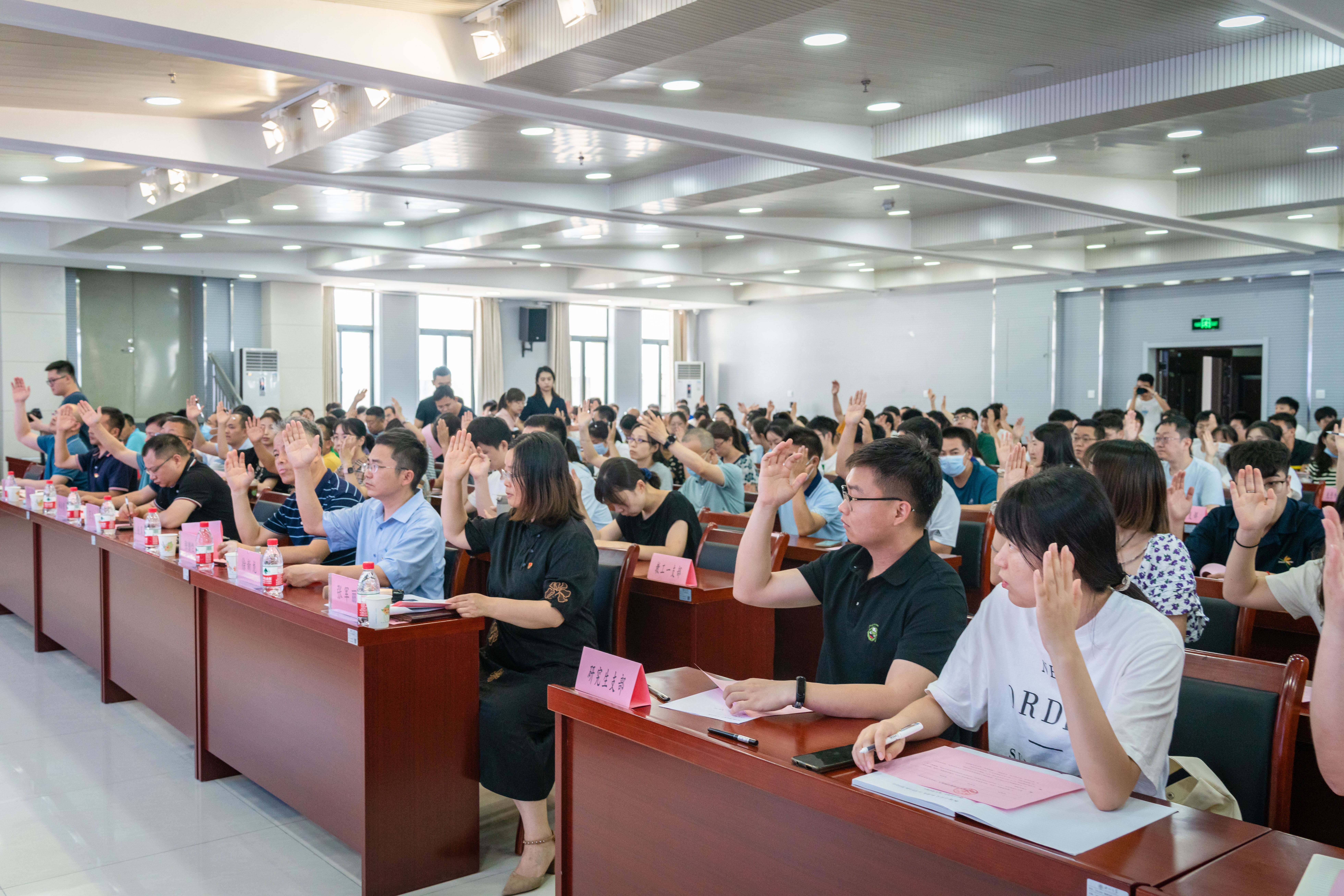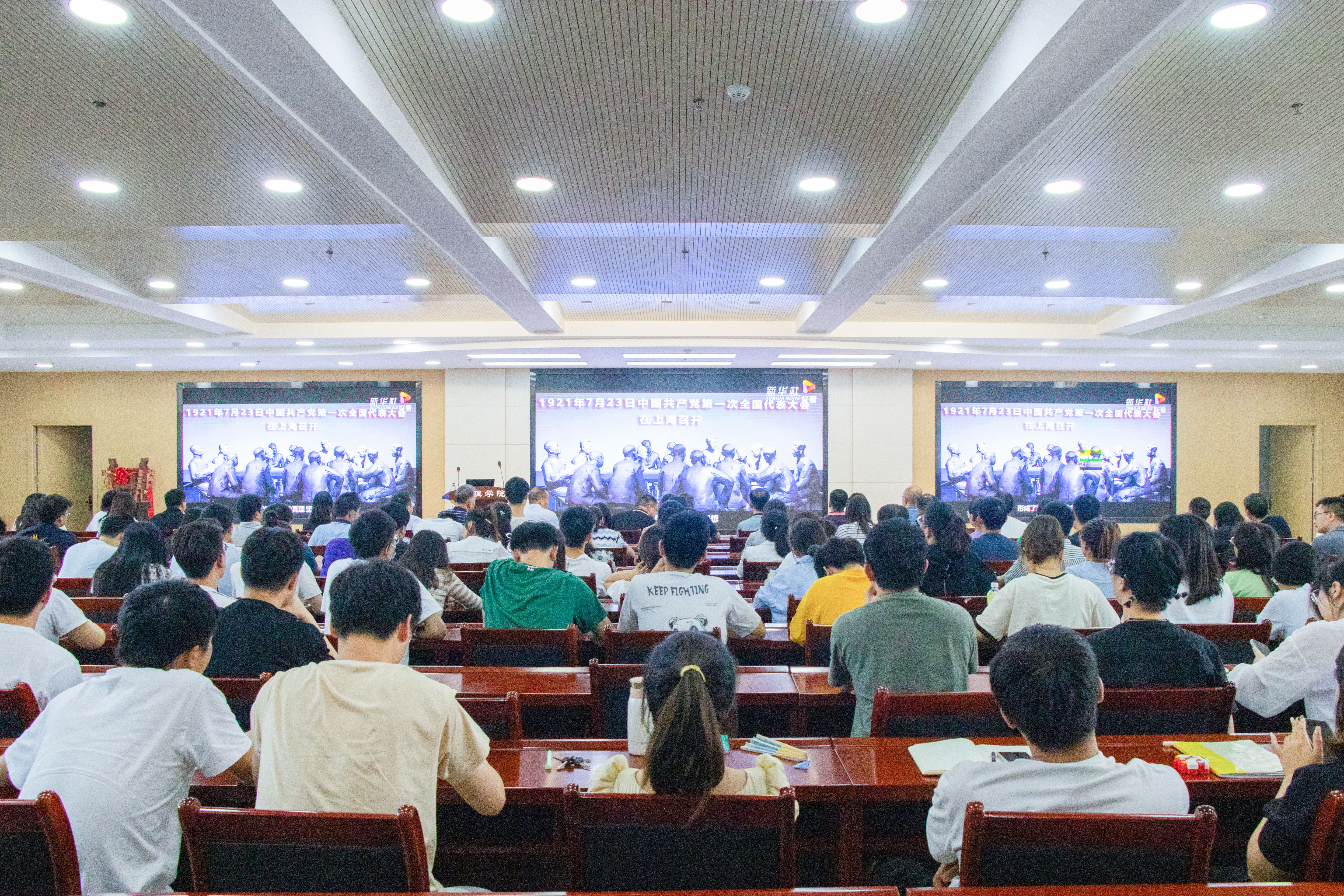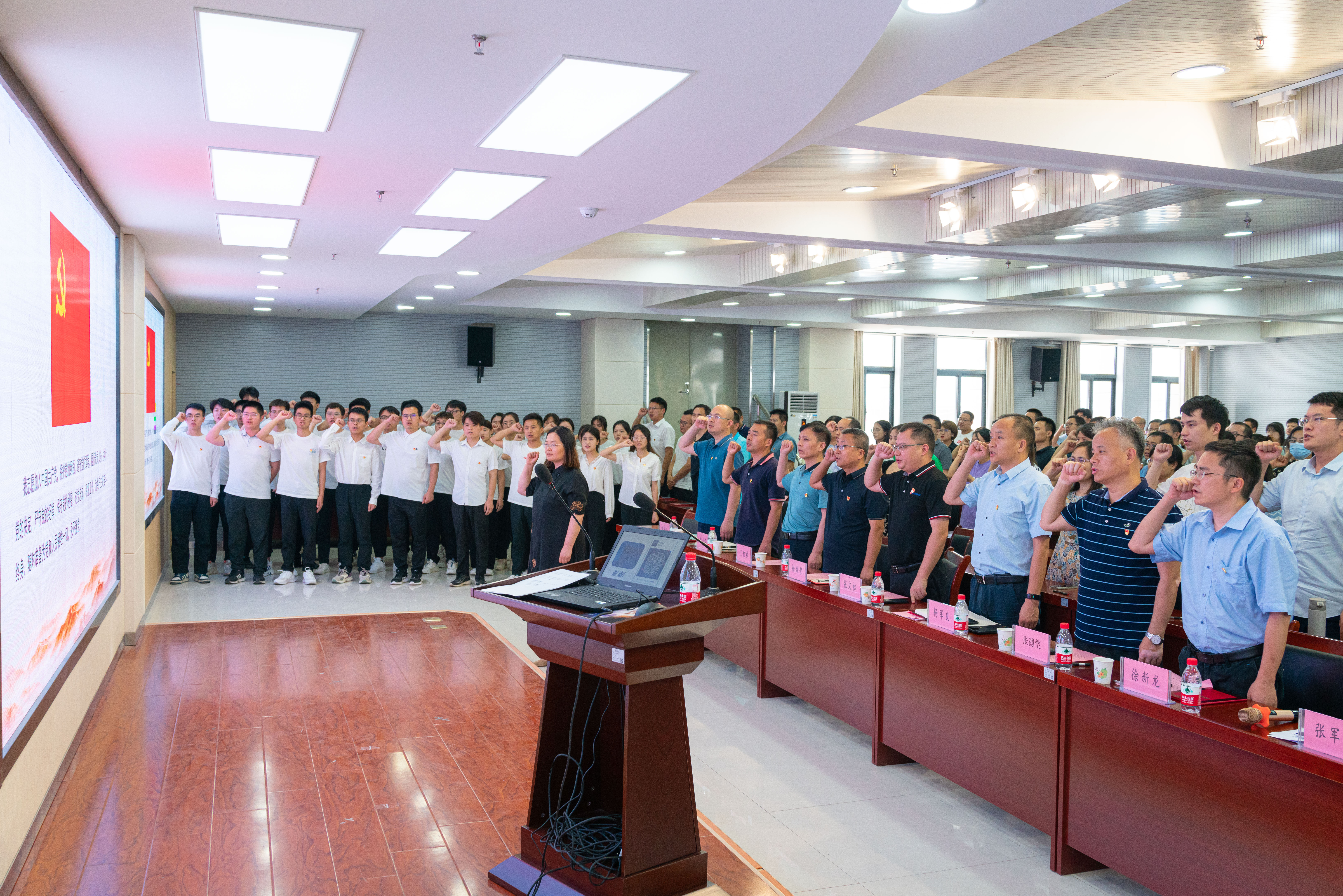 全体起立,面对党旗,紧握右拳,跟随党委书记张军丽同志一起庄严宣誓,老党员重温入党誓词,新党员完成入党仪式,共同庆祝党的101岁生日。