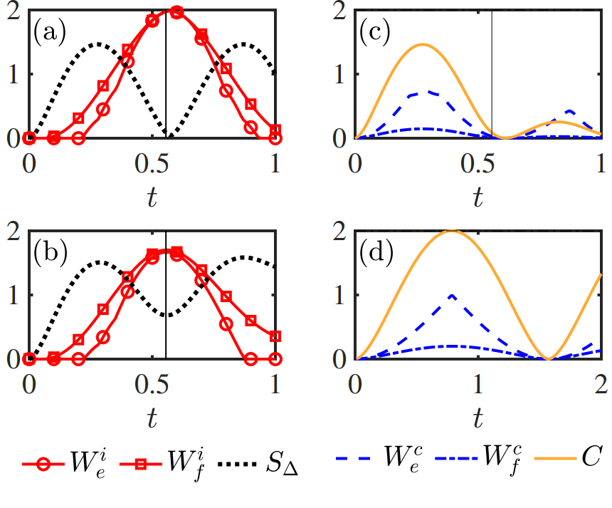 该研究在前期研究的基础上首次给出了模型不依赖的证明,证明了量子相干和量子纠缠在量子电池产生可提取功过程中是必不可少的量子资源。同时,基于团队早期以及其他研究者的工作,首次在量子电池中将可提取功分为相干功和非相干功两部分,建立了它们与量子资源之间清晰的关系。证明了当量子电池充电动力学结束时,相干性有助于提高相干功,但是量子对角熵(即量子相干与量子纠缠之和)又抑制了非相干功的产生。