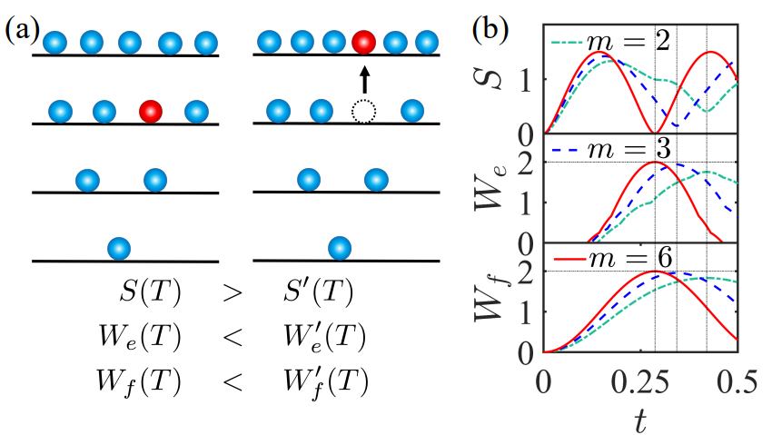 现代实验技术已经能够实现在量子比特水平上探测和操纵物理系统,这要求在微观尺度上考虑量子特性来重构热力学三大定律。其中关键问题之一就是研究量子关联对于可提取功的影响。近30年来,量子信息理论学家针对量子纠缠、量子相干等量子关联建立起了相应的资源理论。尽管这些量子资源理论深化了人们对于纠缠和相干的理解,但是在有限时间非平衡热力学过程中不同量子关联之间会出现必然的耦合,从而使分析量子电池充电动力学变得非常棘手。存在不同类型的可提取功又会带来进一步理论分析的困难。如何明确纠缠和相干对于量子电池可提取功的作用是一个重要的难题。研究团队在2017年就成功揭示了量子相干在Grover量子搜索算法中的资源属性[Phys. Rev. A 95, 032307 (2017)], 论文获得120余次引用。2020年,团队又在量子热机中发现了量子相干的资源属性[J. Phys. A 53, 085301 (2020)]。2021年,针对中心自旋量子电池,解析计算了两电池单元的充电动力学,证明了纠缠对于可提取功的抑制作用[Phys. Rev. B 104, 245418 (2021)]。