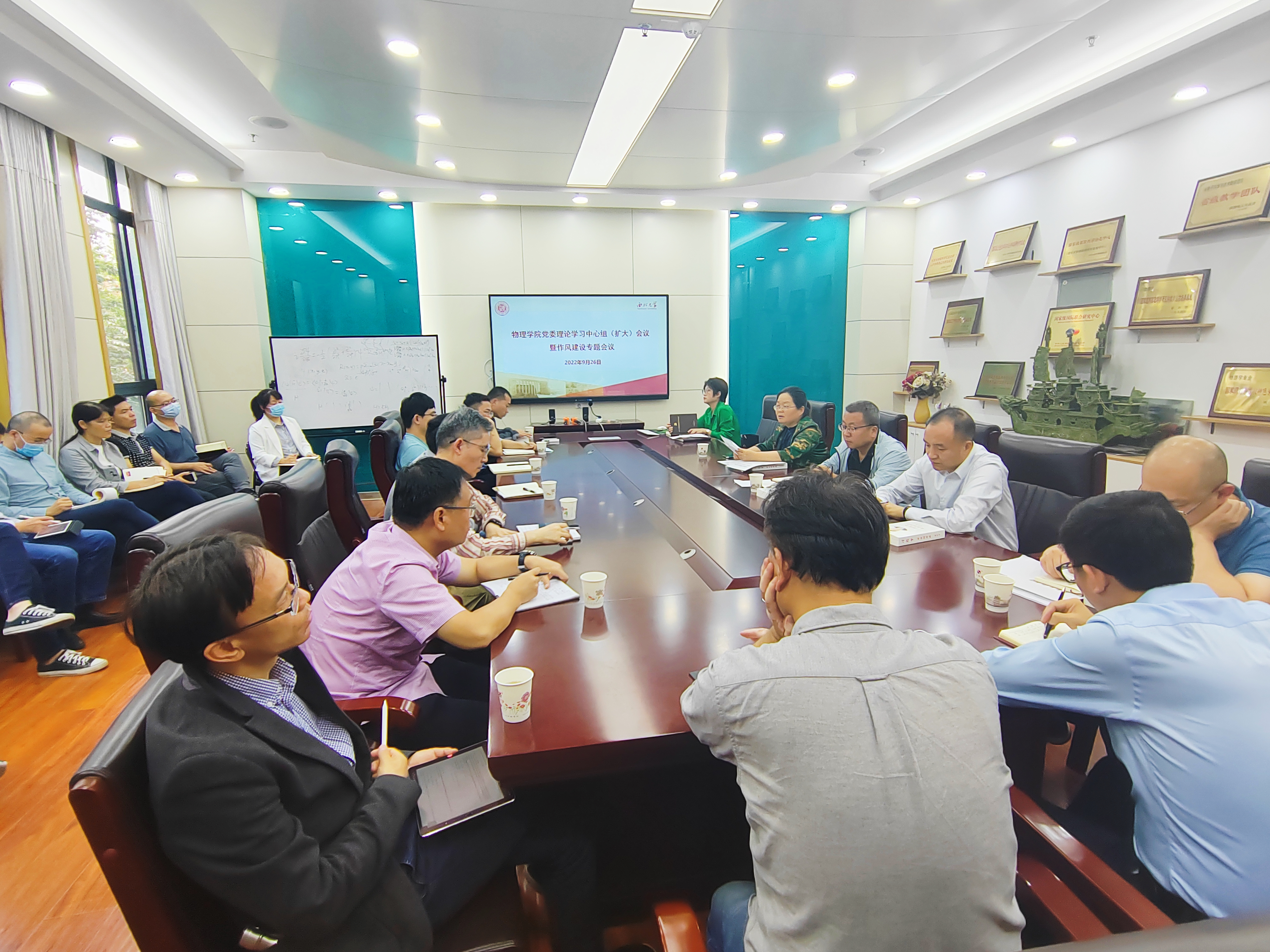 张军丽书记总结指出,作风建设是公司事业发展、教工个人成长的基础性工程,必须牢牢坚守师德第一的工作评价标准,对师德失范行为“零容忍”。希望全院教工以庆祝120年校庆为契机,用校史校训激发持续前行的精神动力,珍惜公司“陕西省师德建设示范团队”荣誉,用好“侯伯宇先进事迹展览馆”资源,从百年物理学科史中汲取精神滋养,立足岗位,苦练内功,以过硬作风和本领为高质量发展贡献力量。