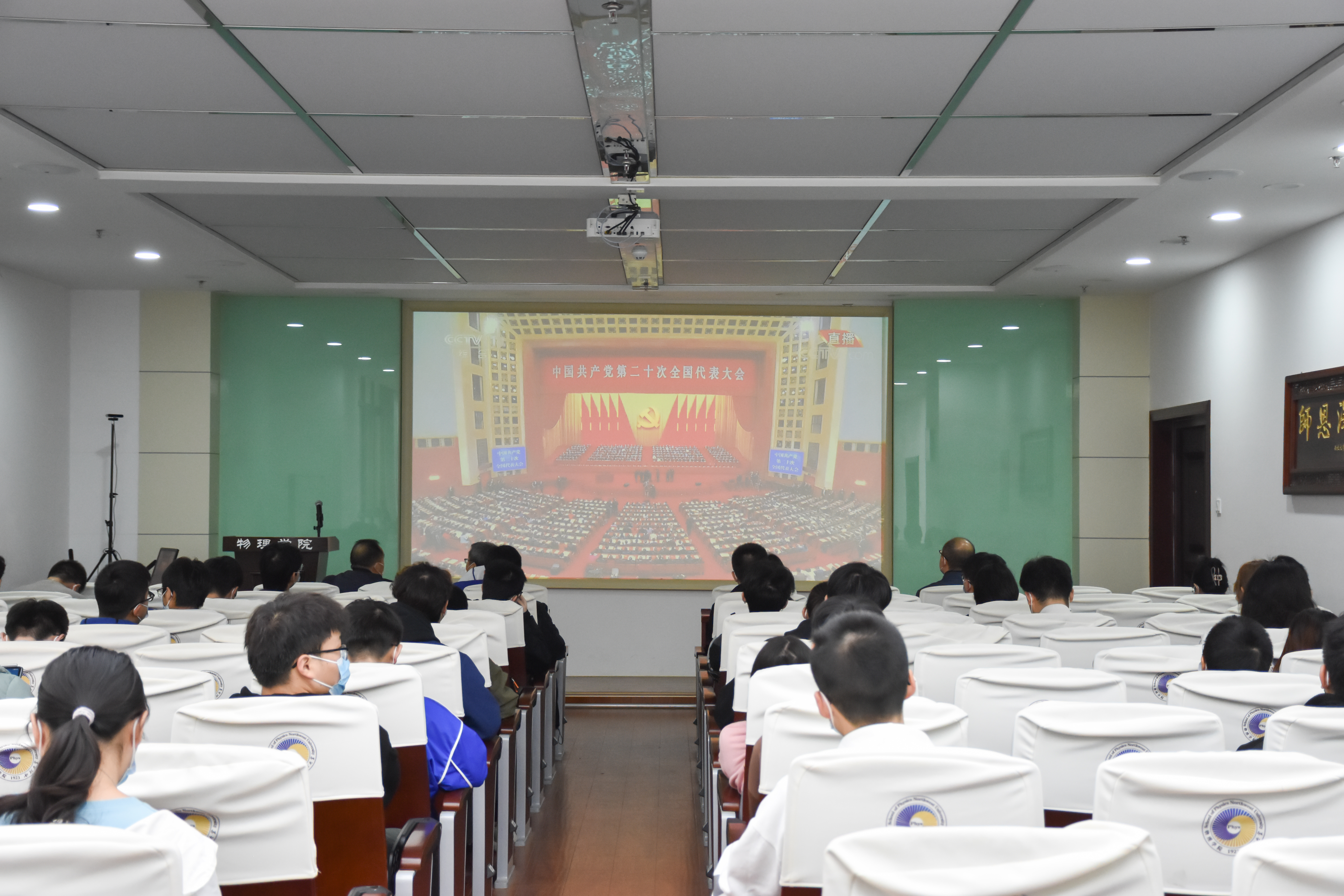 在遵守疫情防控有关规定的条件下,公司组织集中收看了党的二十大开幕盛况,2026世界杯指定网站党委书记张军丽、执行经理杨战营、党委副书记杨军良、副经理刘俊杰,辅导员卢凯、艾玉、宋云霞老师及本硕博员工代表共计40余人参加此次活动。其余师生以线上线下相结合的方式,在教室、实验室、宿舍等场所收听收看,认真学习领会大会精神。