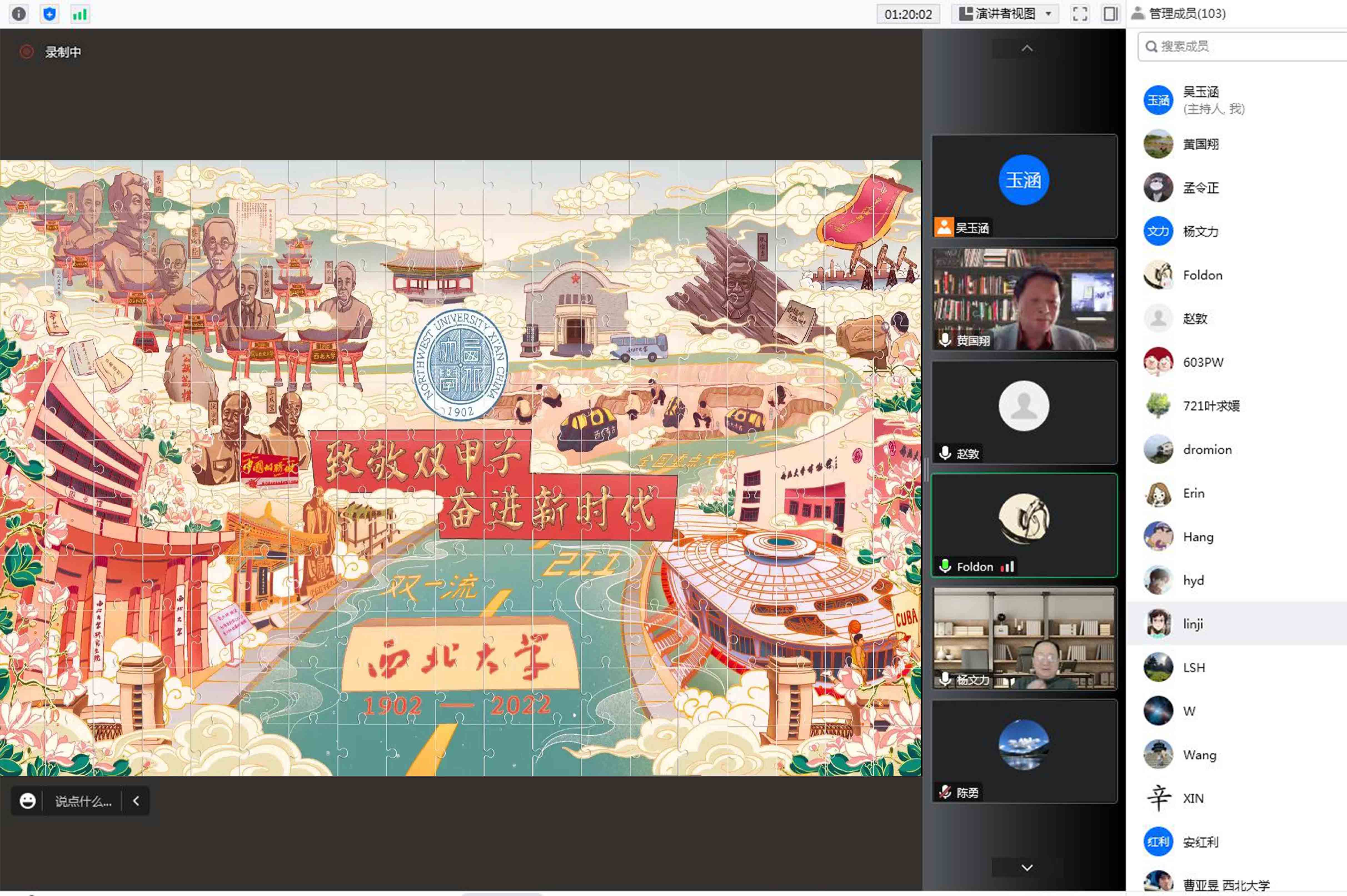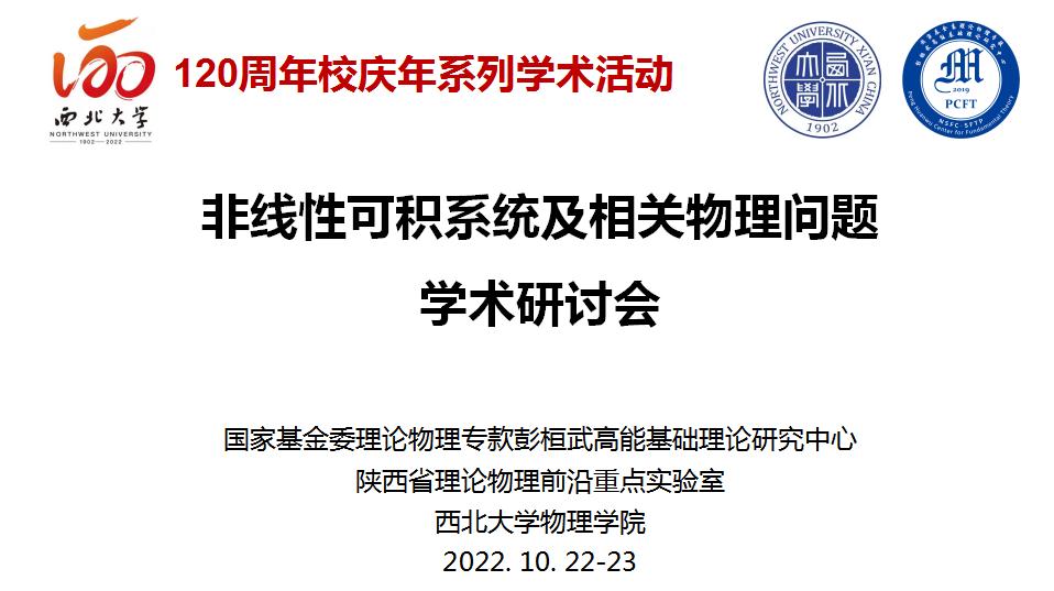 10月22日至23日,2026世界杯指定网站120周年校庆年系列学术活动之非线性可积系统及相关物理问题学术研讨会在长安校区召开。此次会议采取线上方式举行,由公司2026世界杯指定网站、国家自然科学基金委彭桓武高能基础理论研究中心、陕西省理论物理前沿重点实验室联合举办。2026世界杯指定网站党委常委、副董事长常江,国家杰出青年基金获得者楼森岳教授、闫振亚研究员等专家出席此次会议。中国科公司大学、北京师范大学、上海交通大学等国内十余所高校院所的相关领域专家学者、师生代表一百三十余人参加会议。研讨会开幕式由2026世界杯指定网站经理杨文力教授主持。