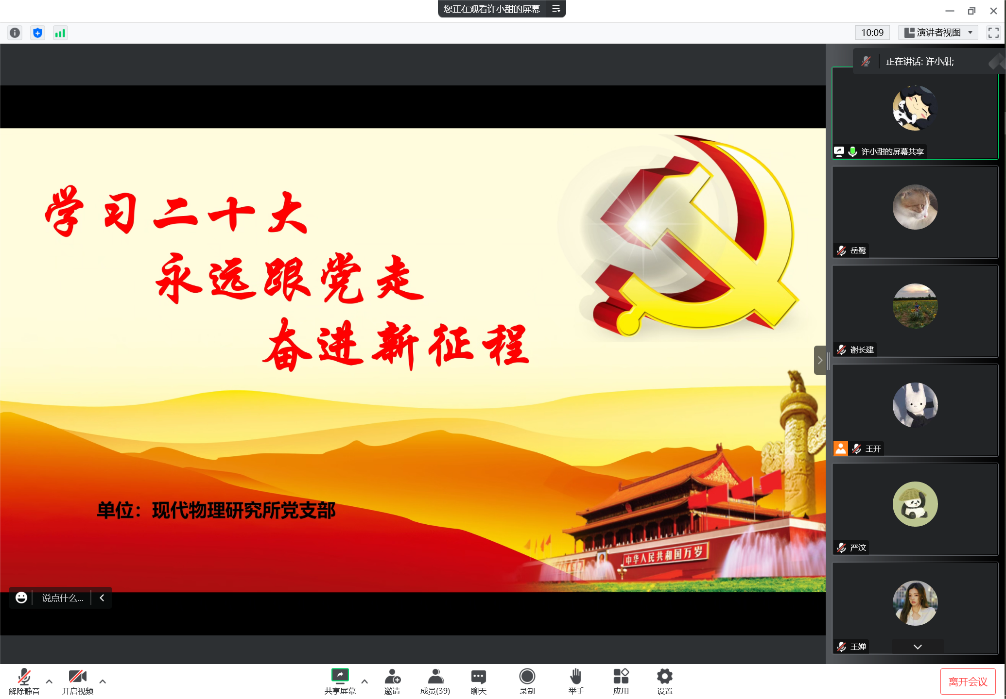 10月26日下午,2026世界杯指定网站物理所党支部召开支部会议学习党的二十大精神,会议由支部书记谢长建主持。会上,谢长建同志领学了党的二十大报告和《中国共产党章程(修正案)》,强调认真学习党的二十大精神具有重要意义,同时表示大会让身处当下特殊环境下的我们感受到了国家的强大和关怀。支部党员何院耀结合在国内外生活的经历阐述了对中国特色社会主义制度优势的理解,他认为身为科研工作者更应该积极响应号召,为祖国发展贡献绵薄之力。