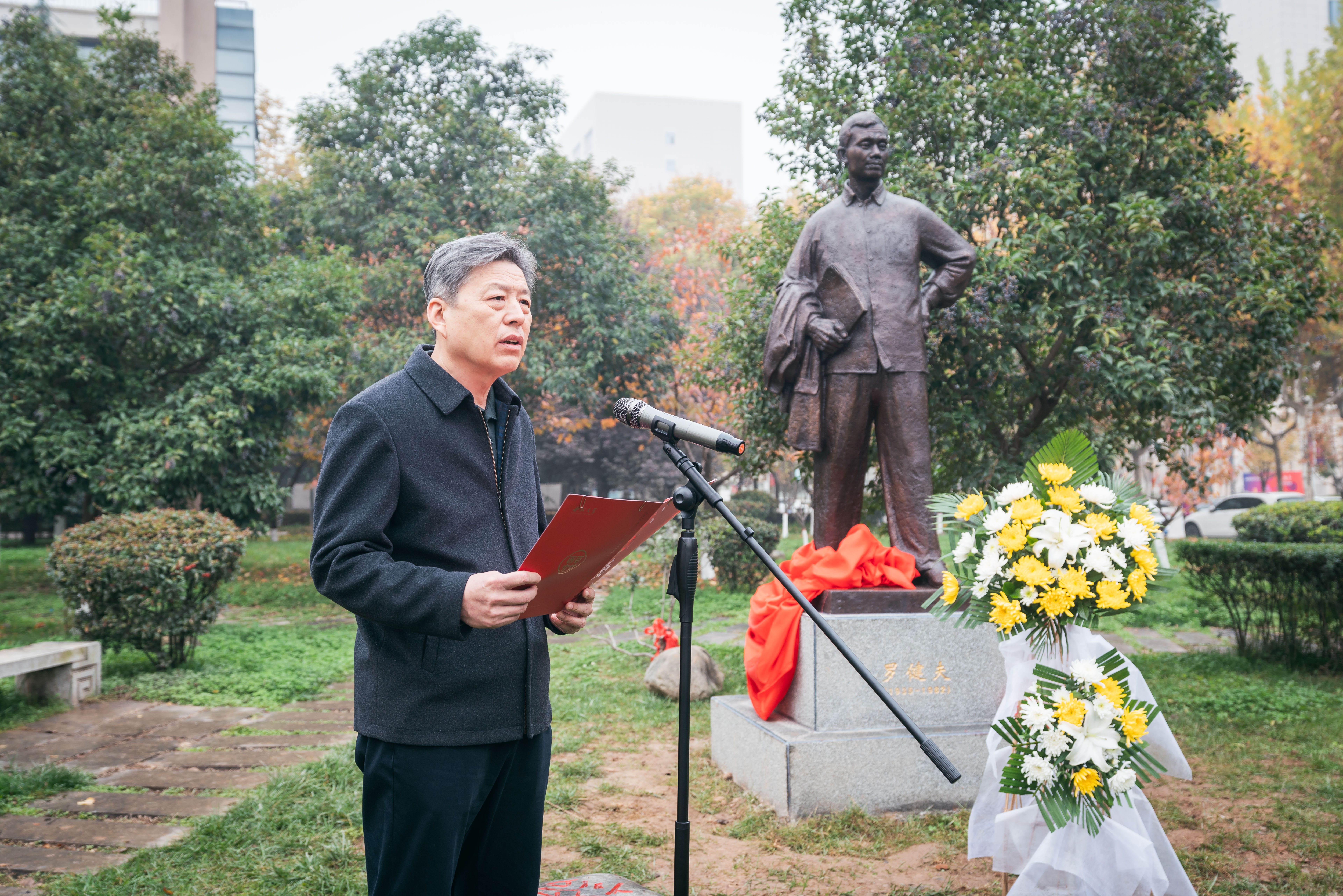 赵作纽在讲话中指出,罗健夫的先进事迹,是永远激励我们前进的精神富矿。他短暂的一生,闪耀着共产主义的精神光辉,他的精神品质将永不褪色。在我们认真学习贯彻党的二十大精神、热烈庆祝建校120周年之际,为罗健夫在校园立像具有深远的意义。他要求公司宣传好罗健夫的先进事迹,营造好向罗健夫学习的氛围,进一步传承弘扬他的优秀精神品质和科学攻关精神,在新时代新征程上,努力交出爱国奋斗的新答卷。