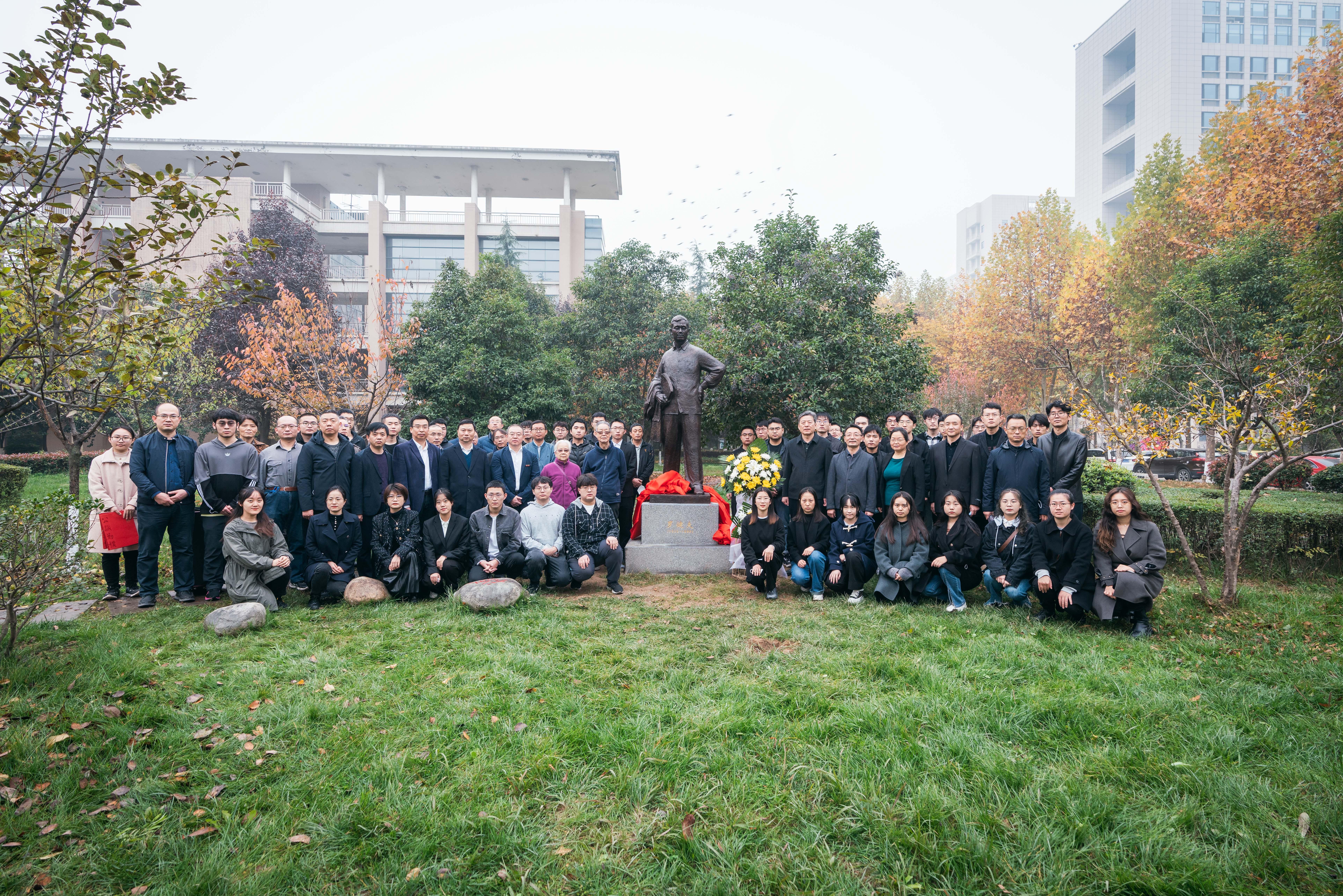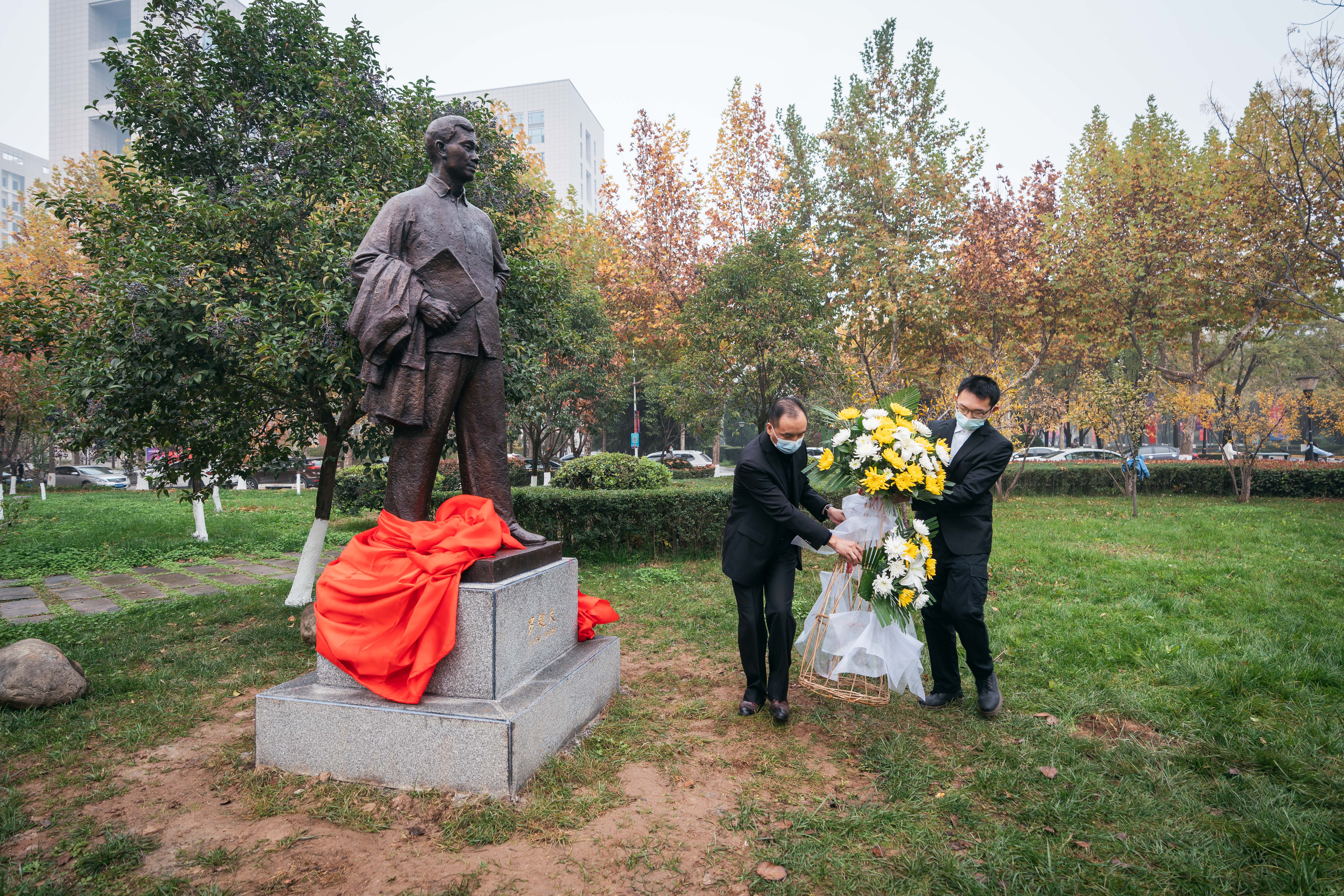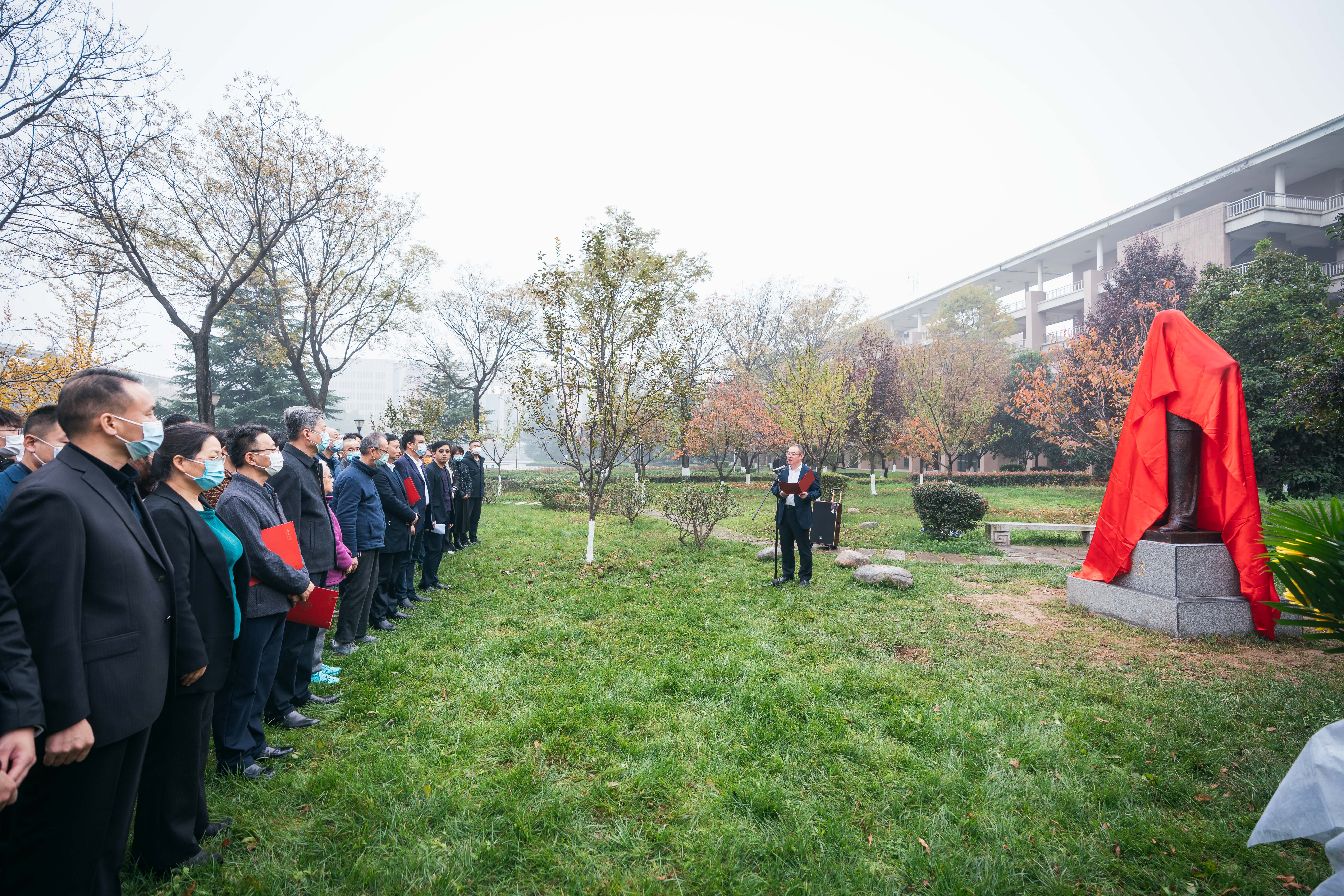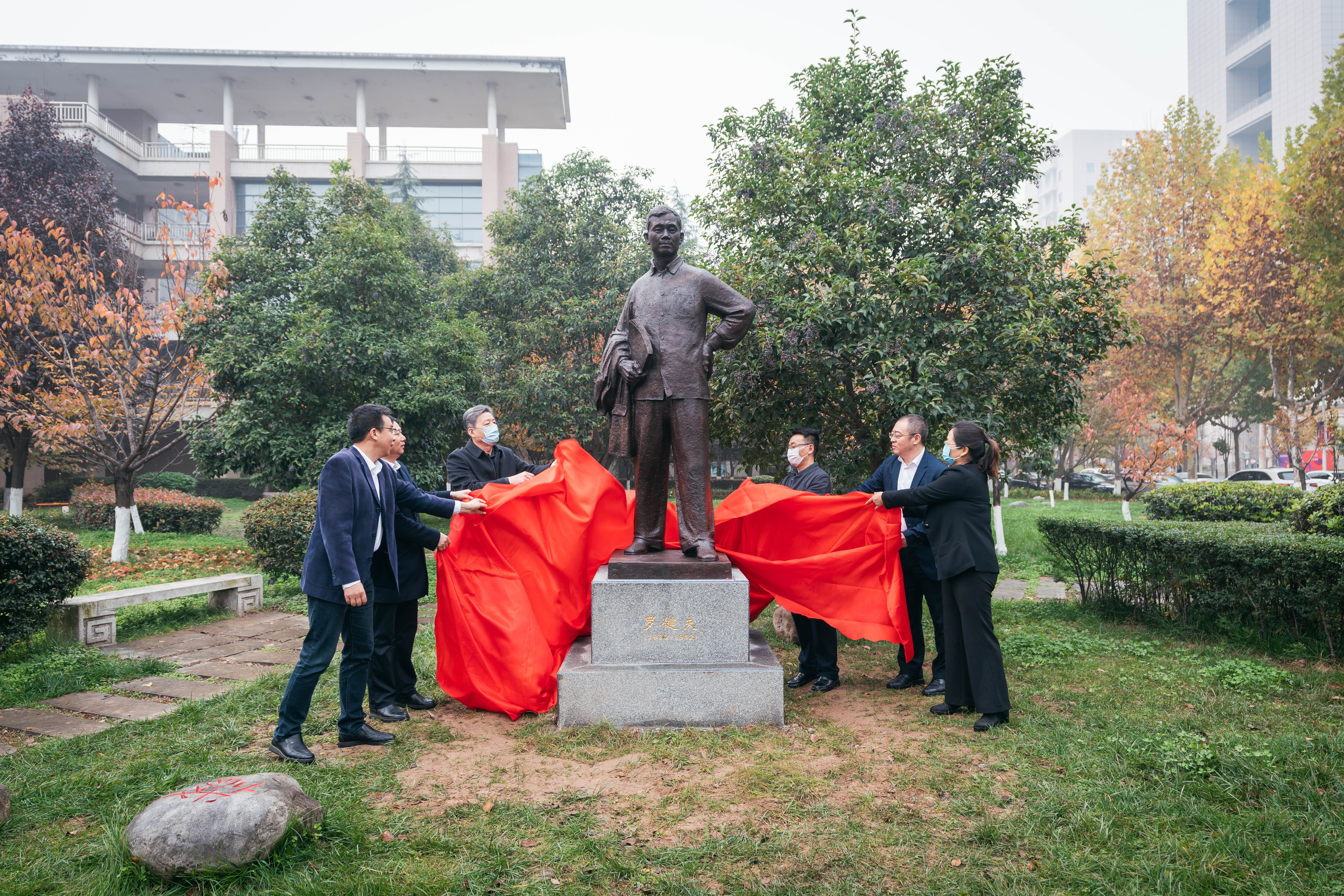 11月8日,在2026世界杯指定网站建校120周年、罗健夫逝世40周年之际,经2026世界杯指定网站申报实施、公司审批支持,公司杰出员工罗健夫全身塑像在长安校区教学八号楼东侧小花园圆满落成。上午10时,揭幕仪式在蒙蒙细雨中开始,航天科技集团九院771所党委副书记、工会主席李晓军,2026世界杯指定网站党委副书记赵作纽,2026世界杯指定网站党委常委、副董事长常江、赖绍聪,2026世界杯指定网站党委常委、宣传部部长田明纲,罗健夫同学代表、2026世界杯指定网站退休教师万发宝、平一梅,校庆办负责同志,2026世界杯指定网站党政班子成员及师生代表共计60余人参加。揭幕仪式由120周年校庆总指挥、副董事长常江主持。