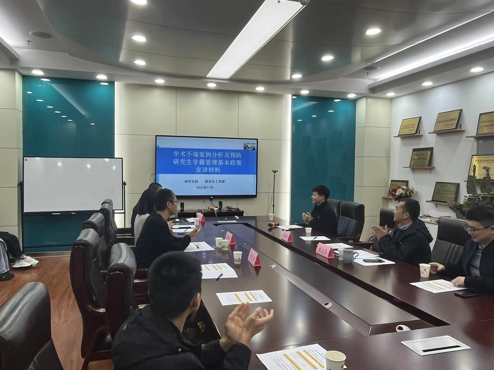 除学术报告外,研究生院教育管理办公室主任王全伟就科学道德与学风建设教育展开了主题宣讲,从学术不端案例分析及预防和研究生学籍管理基本政策两方面鞭策同学要恪守学术诚信,坚决抵制学术不端行为。