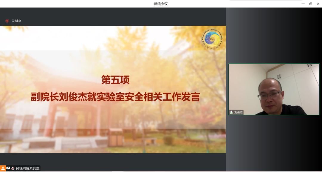 刘俊杰副经理就实验室安全对师生提出三点要求,一是夯实安全责任,提高安全意识,明确安全员制度,进实验室前要征得导师批准且备案登记;二是实验中要科学安排实验内容,做好日志记录,严格按照规范开展试验;三是实验后注意卫生安全,及时通风,保证实验环境整洁干净。他希望所有师生将安全放在首要位置,高标准严要求,齐心抗疫,争取早日恢复校园秩序。