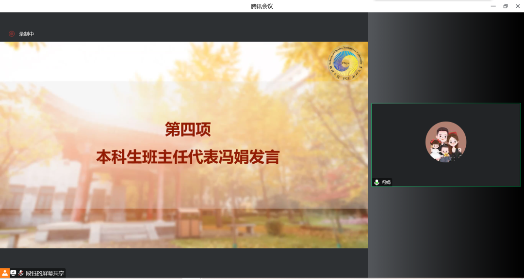 本科生班主任代表冯娟从本科生学业的角度出发,强调自觉自律的重要性,建议同学们加强课前预习、课后复习,鼓励同宿舍员工组建学习小组,在学业上端正态度,查漏补缺,互相督促启发,生活中互帮互助,保持乐观心态。