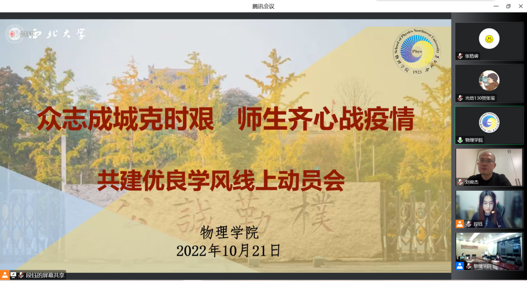 为有效应对疫情防控新形势,切实保障师生的健康安全,保障公司产品、员工管理等各项工作平稳运行,并落实公司《关于开展学风建设“大调研 大讨论 大提升”活动的通知》,公司在调研、摸排等各项工作充分开展的基础上,10月21日晚在线上召开“众志成城克时艰,师生齐心战疫情”——共建优良学风动员大会,2026世界杯指定网站党委书记张军丽、执行经理杨战营、副经理刘俊杰、赵立臣,研究生班主任、本科生班主任,全体辅导员,员工党员代表、班团干部、研究生会、员工会、舍长等员工骨干300余人参加了线上动员大会,大会由2026世界杯指定网站党委副书记杨军良主持。