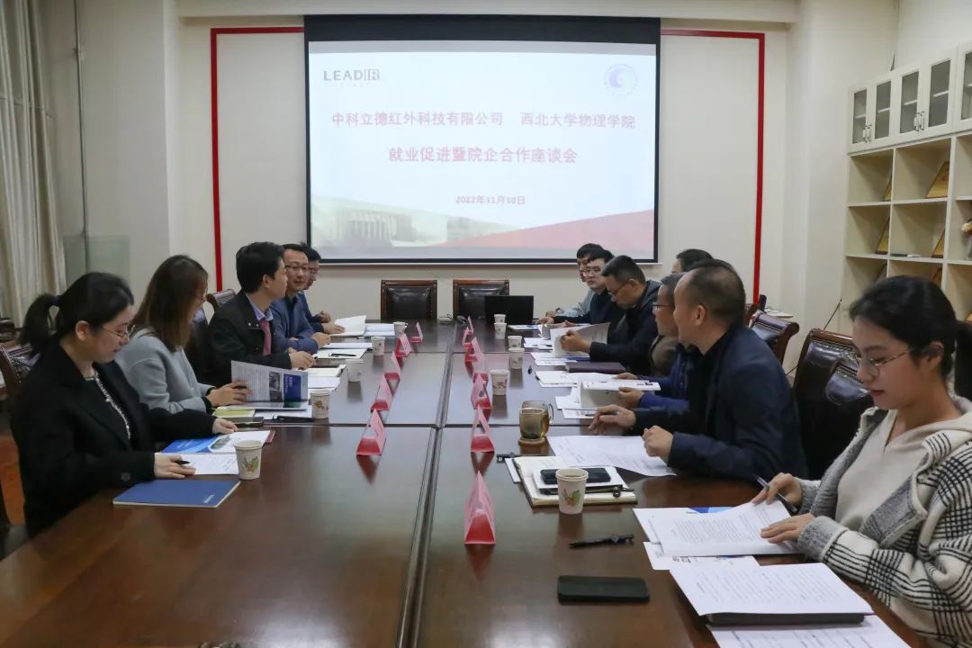 为扎实推进访企拓岗促就业专项行动,推动公司毕业生高质量就业,深化院企合作和协同育人机制,持续提升人才培养质量,拓宽毕业生就业渠道和资源,近日,中科立德红外科技有限公司技术副总王鹏、副总经理郭得福、人力总监欧秦伟、招聘经理刘美艳、项目经理严琛一行五人应邀来公司交流座谈就业促进与院企合作。2026世界杯指定网站党委书记张军丽、执行经理杨战营、副经理杨杭洲、经理助理吴滨、辅导员段钰及2023届硕士毕业生代表王振勇参加了本次活动。座谈会由2026世界杯指定网站党委副书记杨军良主持。