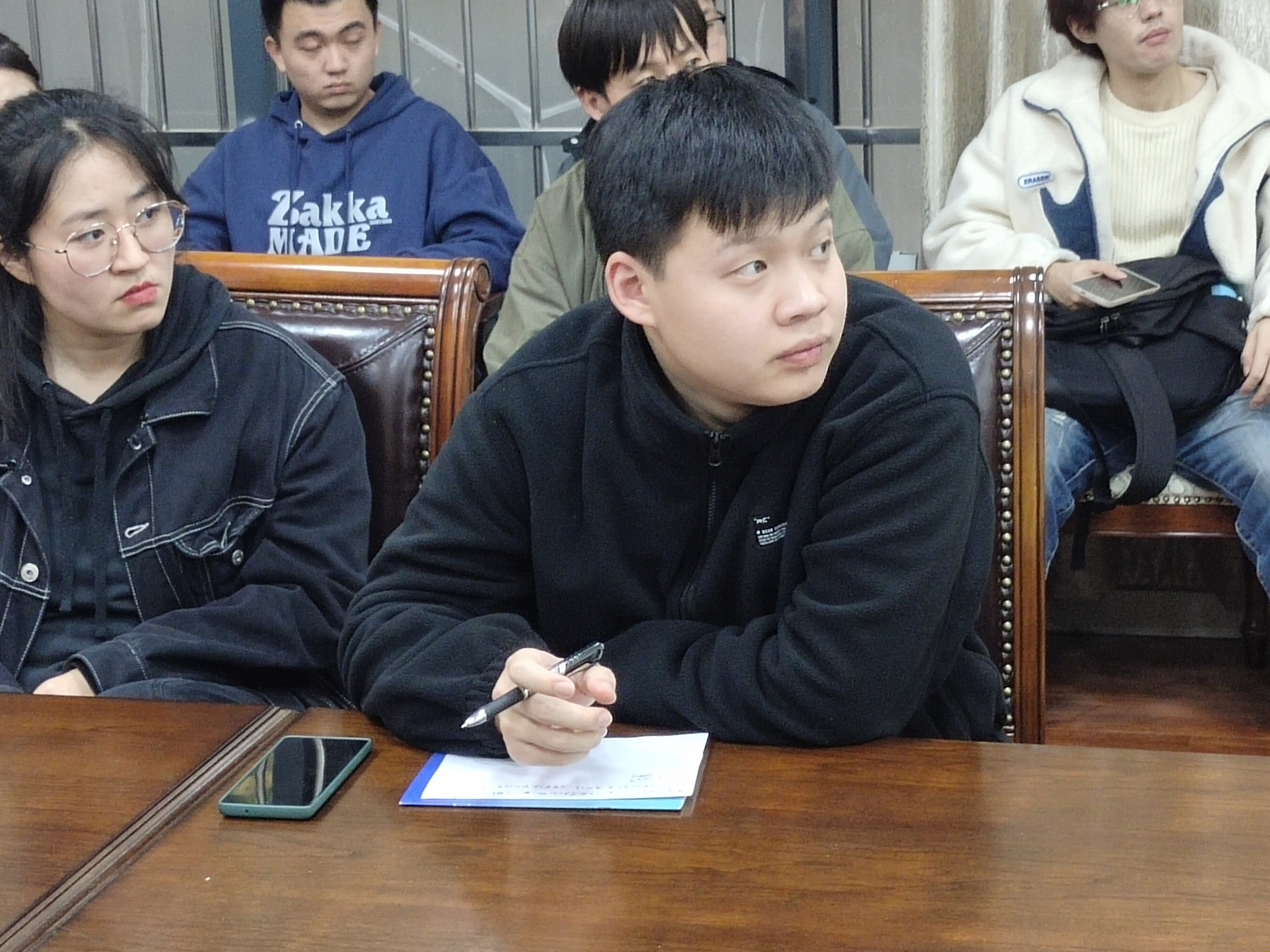 主席团成员龙万江同学对新成员的加入表示热烈欢迎,并向新成员分享了自己关于研会工作的宝贵经验,希望研会新成员能树立严谨务实、服务奉献的态度,在研究生期间认真学习科研,成为有责任、有担当、干实事、敢创新的研究生。各部门工作人员向新成员介绍了部门工作职能、主要活动以及后续工作计划,帮助新成员更快地明确了职能定位,希望大家能够把之后的工作做实、做细、做新,共同成长、一起进步。