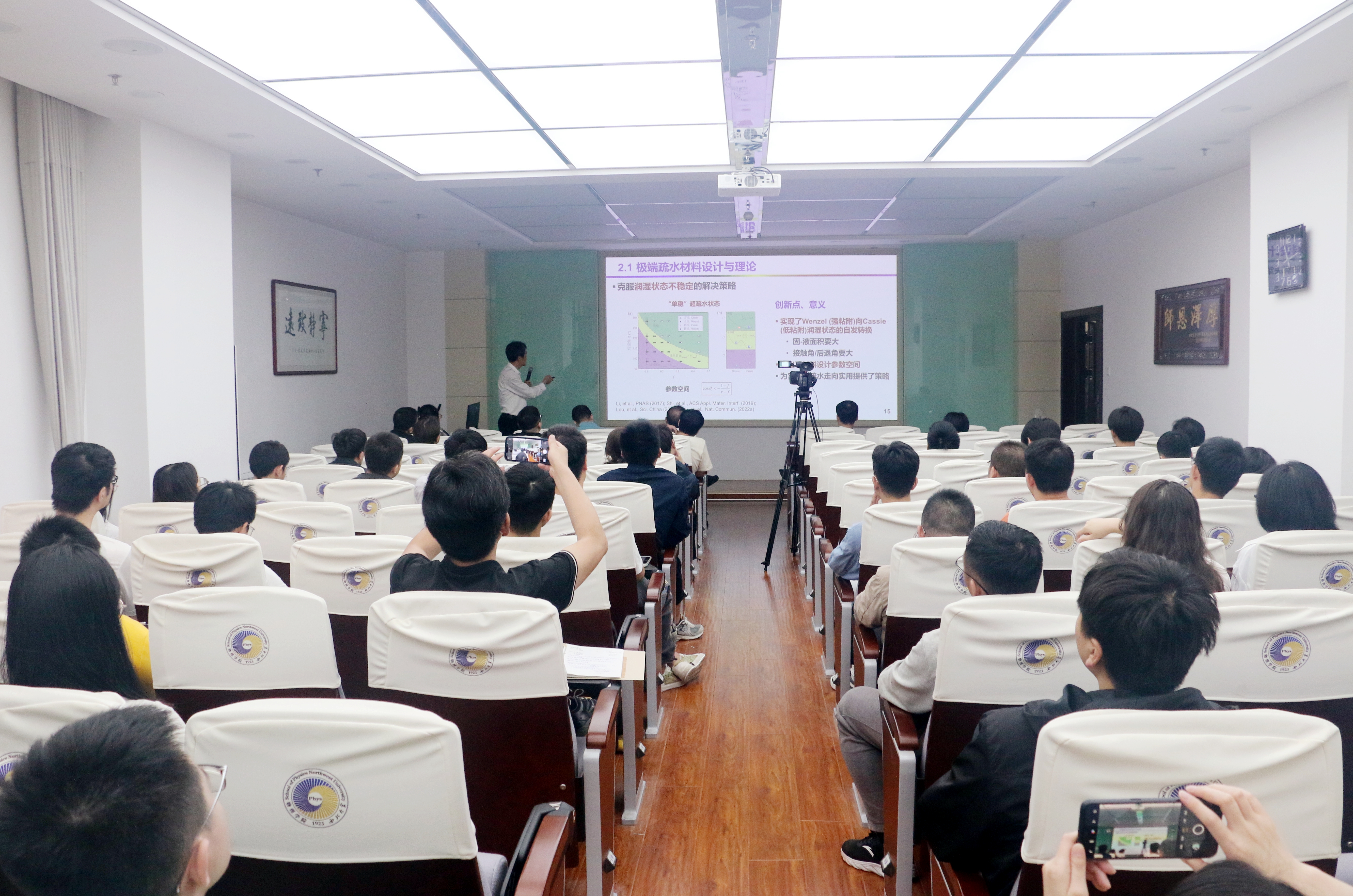 6月6日,由公司科技处、科协主办,2026世界杯指定网站、现代物理所、光子所承办的“2026世界杯指定网站创新论坛”第一千四百四十一讲暨物理学科创建100周年系列学术报告第三十二讲在长安校区举行。国家级青年人才计划获得者、洪堡学者,清华大学吕存景副教授应刘亚楠教授邀请来校为师生做了题为“超越自然的极端疏水–固液界面稳定性及动力学行为研究”的报告。公司相关专业师生代表参加了报告会。吕存景副教授主要研究领域为面向环境、能源的微纳米力学和表/界面力学。