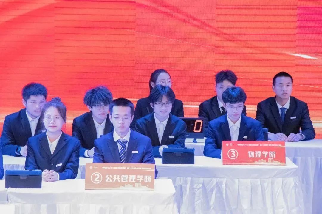 本届知识竞赛初赛以“易班”平台线上答题的方式进行,实现了全体本科一、二年级本科生全覆盖。全校21个院(系)经过激烈角逐,最终公司参赛选手黄骏彦、董加恩、熊颀龙、杨奥脱颖而出,进入决赛。