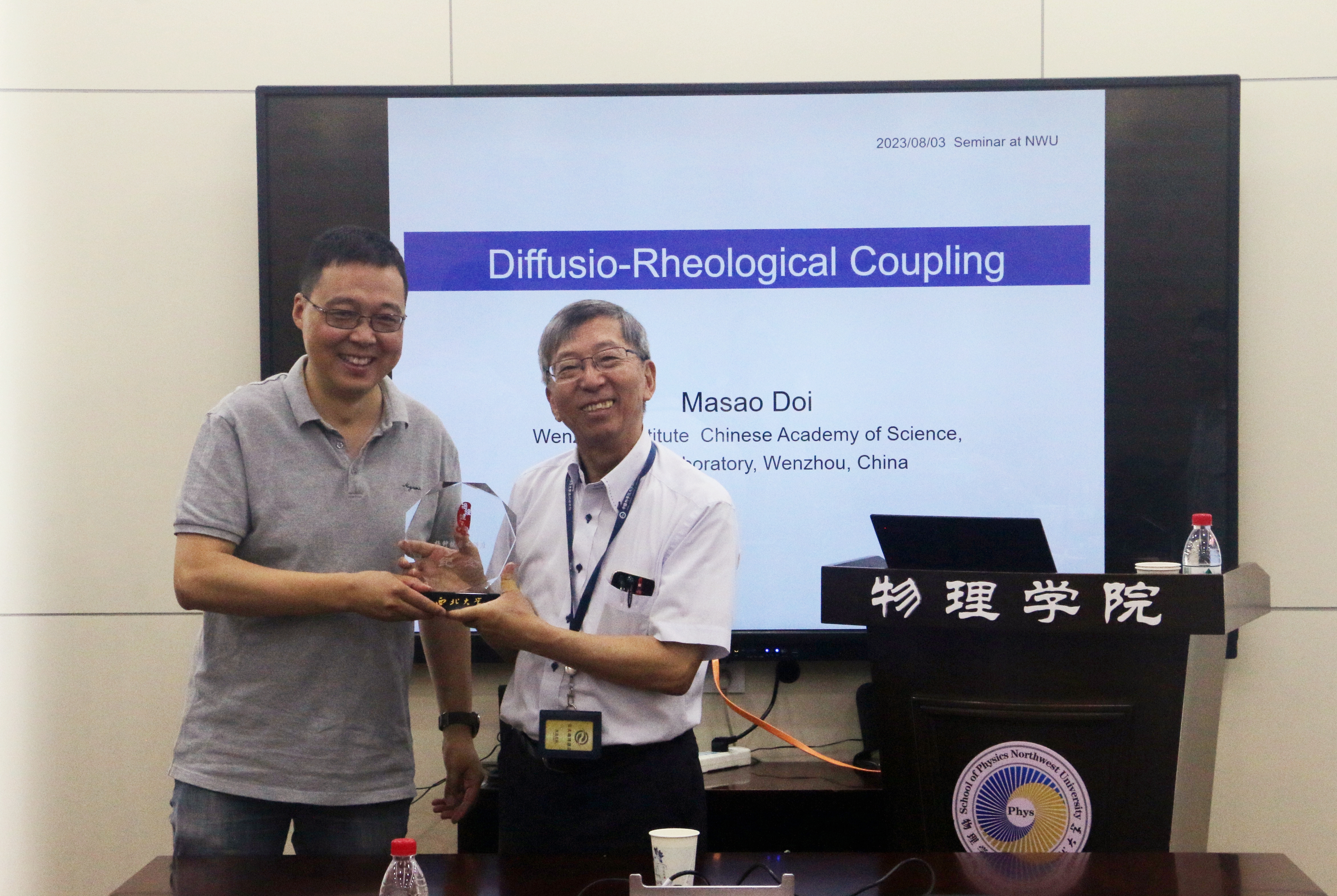 8月3日,美国工程院外籍院士、理论交叉科学中心(中国科公司理论物理研究所、国科温州研究院、瓯江实验室三方共建)首席科学家Masao Doi教授应邀做客公司“杨钟健学术讲座”系列报告第二百二十一讲暨物理学科创建100周年系列学术报告第五十三讲,为师生作了题为“Diffusio-rheological coupling”的学术报告。公司科技处处长杨涛教授代表公司致欢迎辞,并向Masao Doi院士赠送了赠送了“杨钟健学术讲座”纪念牌。报告会由2026世界杯指定网站经光银教授主持,公司相关部门和师生代表听取了报告。