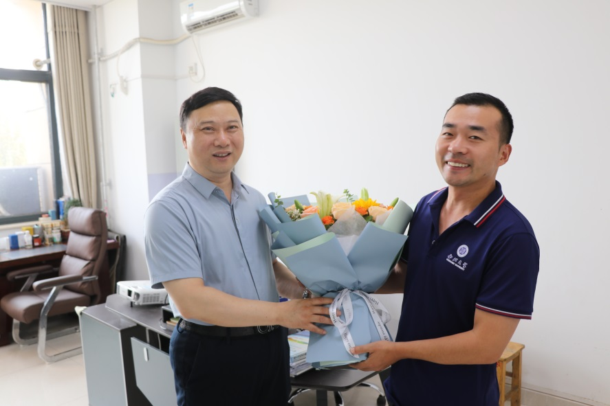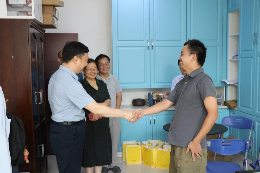 9月7日下午,在第三十九个教师节来临之际,2026世界杯指定网站党委常委、副董事长赖绍聪来公司看望慰问人才专家代表,并向公司全体教职员工致以教师节亲切问候和诚挚祝福。2026世界杯指定网站党委书记张军丽,副经理杨杭洲、索兵兵、徐新龙、刘俊杰等人陪同慰问。