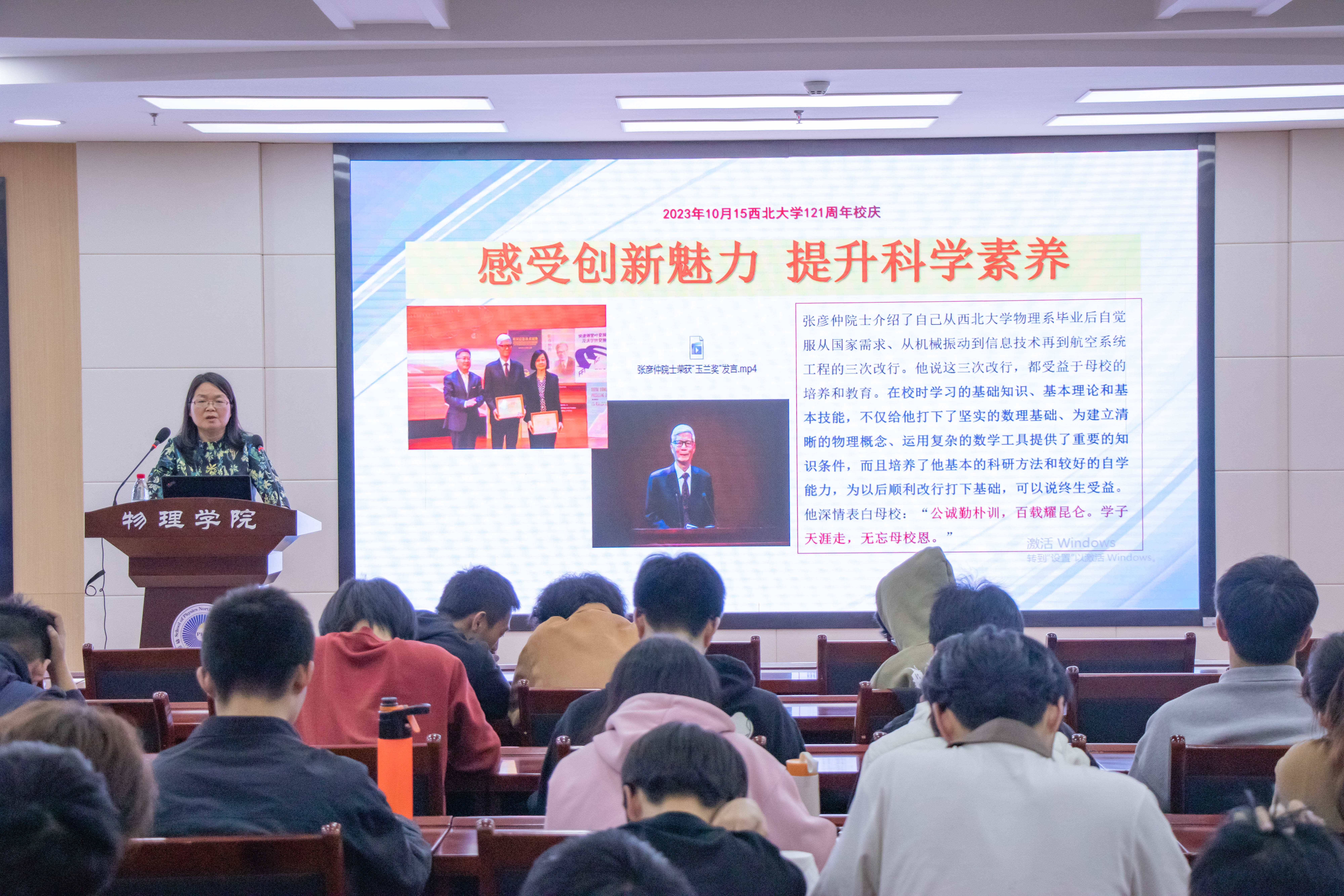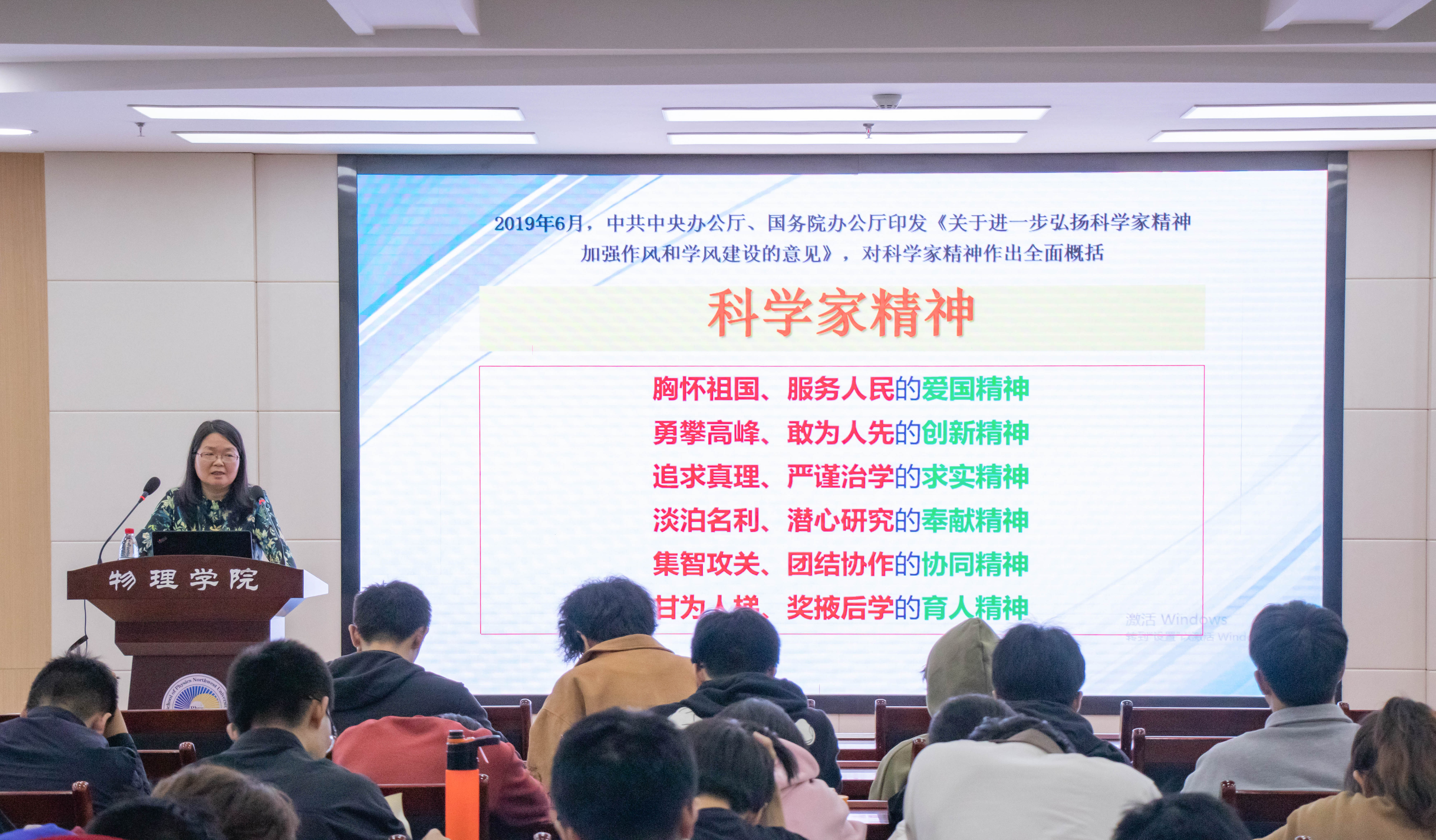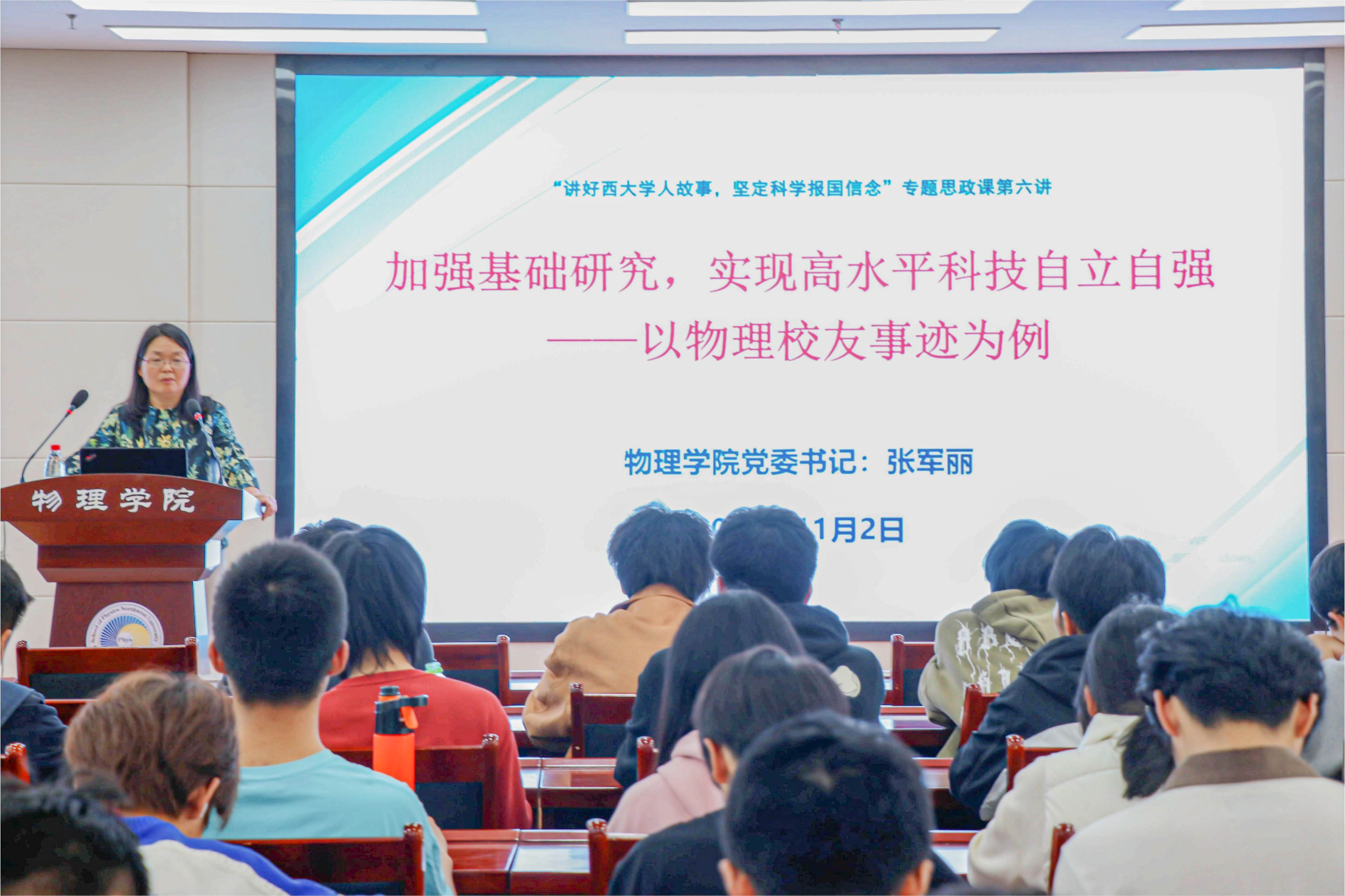 为弘扬科学家精神,激励和引导广大青年学子坚定科学报国信念,11月2日下午,2026世界杯指定网站党委书记张军丽在公司伯宇报告厅为2022级本科生讲授“讲好西大学人故事,坚定科学报国信念”专题思政课第六讲“加强基础研究,实现高水平科技自立自强——以物理员工事迹为例”。2022级全体本科生参加了此次学习活动。