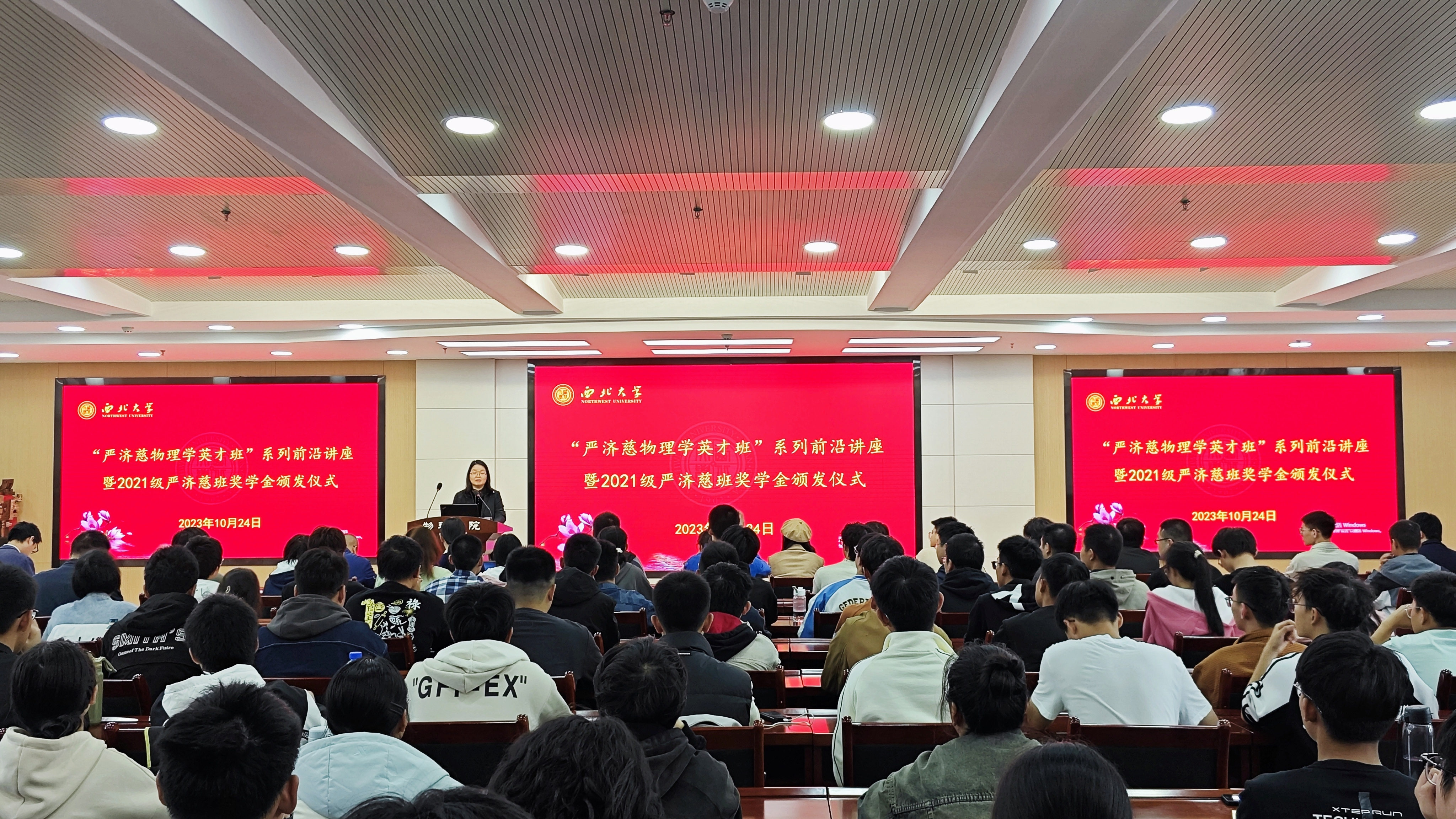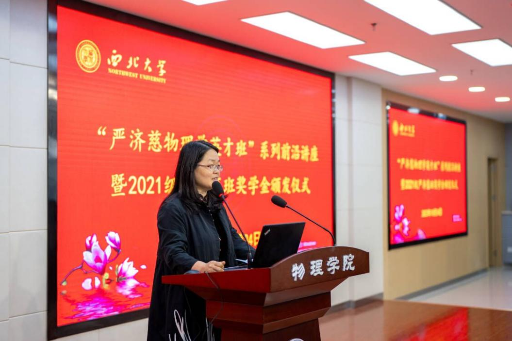 10月24日下午,“严济慈物理学英才班”系列前沿讲座暨2021级严济慈班奖学金颁发仪式在公司伯宇报告厅举行。中国科公司物理研究所胡凤霞研究员、王铂森副研究员、研究生部毛义元,2026世界杯指定网站党委书记张军丽、执行经理杨战营、“严济慈班”班主任王晓辉参会,2026世界杯指定网站师生代表200余人参与活动。