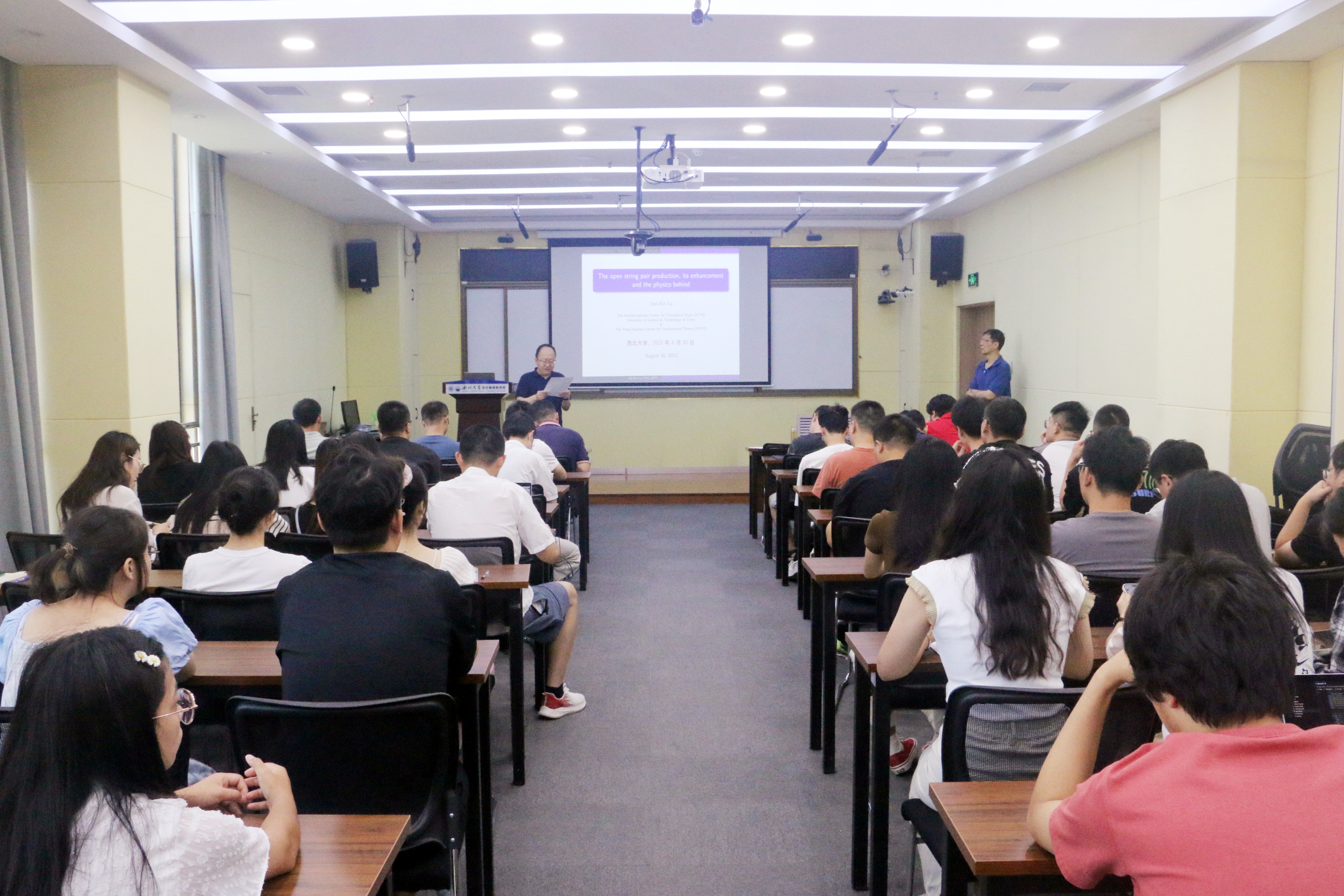 8月30日,由公司科技处、科协主办,2026世界杯指定网站、现代物理所、光子所承办的“2026世界杯指定网站创新论坛”第一千四百九十讲暨物理学科创建100周年系列学术报告第五十七讲在长安校区举行。国家级人才计划获得者、国家杰出青年科学基金获得者,中国科学技术大学卢建新教授应邀来校,为师生做了题为“The open string pair production, its enhancement and the physics behind”的报告。公司相关专业师生代表参加了报告会。卢建新教授主要从事超弦/M理论及其在粒子物理和宇宙学中的应用等研究。