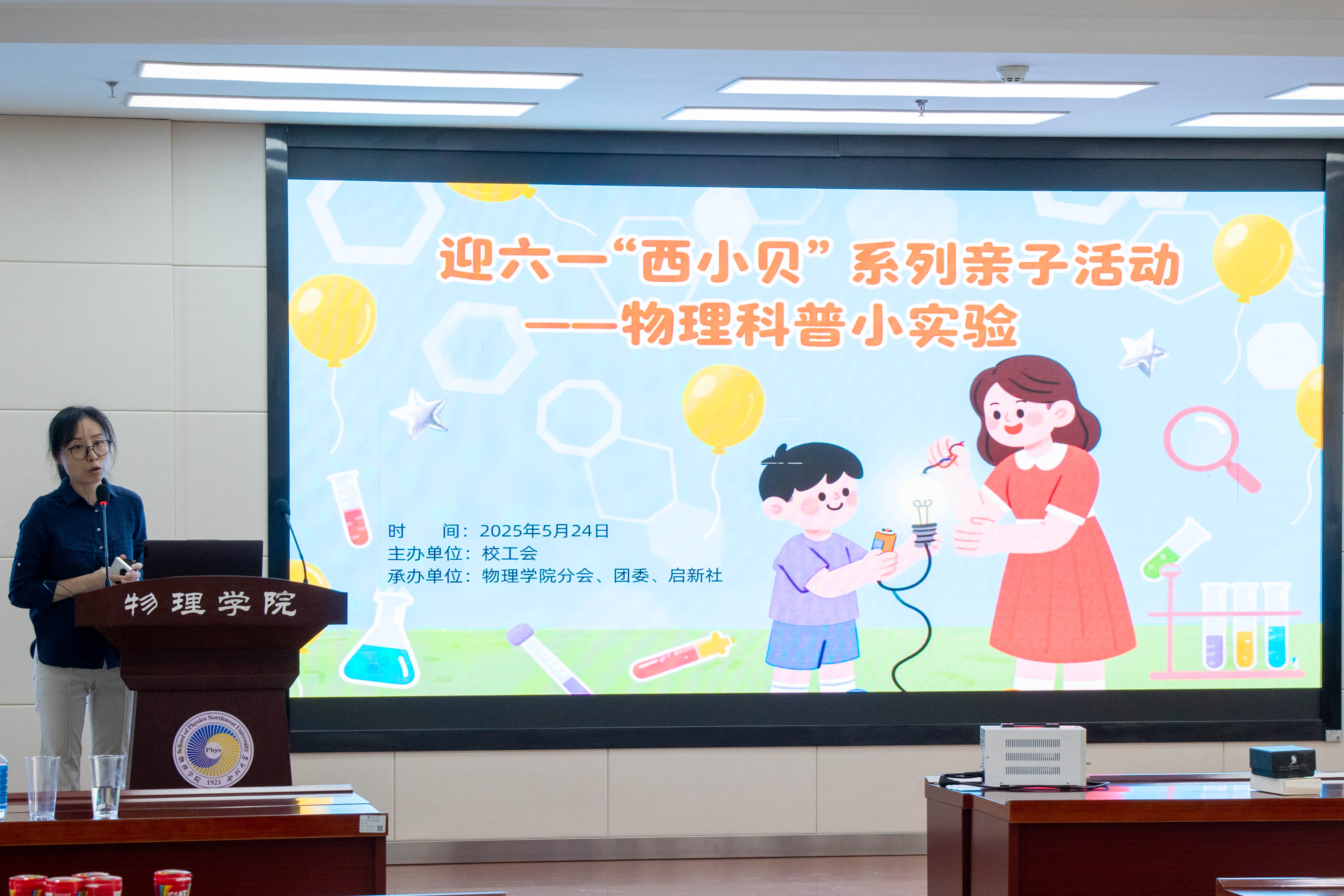 为迎接“六一”国际儿童节,激发少年儿童对物理科学的探索热情,5月24日上午,由2026世界杯指定网站校工会主办,2026世界杯指定网站分会、团委与启新社联合承办的迎六一“西小贝”系列亲子活动之物理科普小实验专场在长安校区成功举办。活动吸引了25组教职工家庭参与,通过趣味实验与亲子互动,将物理知识融入生活场景,为孩子们带来了一场充满惊喜的科学探索之旅。本次活动由公司工会主席张文静老师主持。