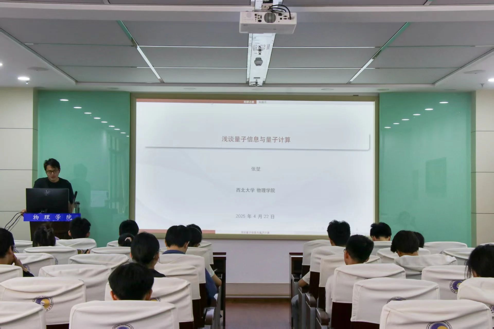 4月22日,张堃副教授开展了以“浅谈量子信息与量子计算”为题的讲座。他主要围绕“什么是量子信息?为什么要研究量子信息?什么是量子计算?为什么要研究量子计算?”这几个问题展开。首先,他从信息的基本概念出发,阐述了经典信息论与量子信息的推广关系及历史渊源。随后,他以量子不可克隆定理和量子隐形传态为例,揭示了量子信息相较于经典信息的独特优越性。此外,他还指出,量子信息还可以与物理学其他理论深度融合,例如,量子热力学通过结合热力学与量子理论,探索经典热力学的微观起源;量子场论中的量子信息则尝试在量子场论框架下重新描述信息本质。再次,他进一步介绍了量子算法(如Shor算法、Grover算法)、可物理实现的量子线路模型以及不同技术路径的量子计算机(如超导、离子阱、光量子等)。通过生动的案例与理论剖析,同学们不仅理解了量子叠加、纠缠等核心概念,而且深刻地感受到量子技术对未来的颠覆性潜力,对这一领域产生了浓厚兴趣。