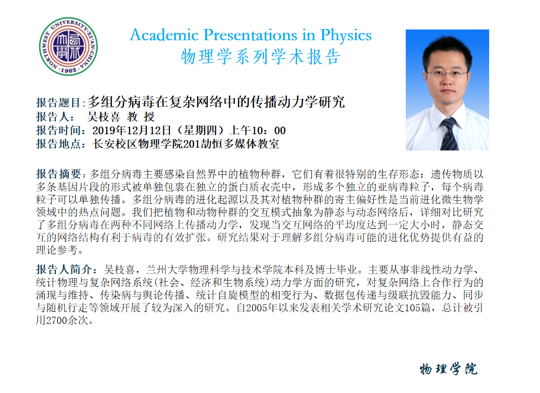 学术报告——多组分病毒在复杂网络中的传播动力学研究